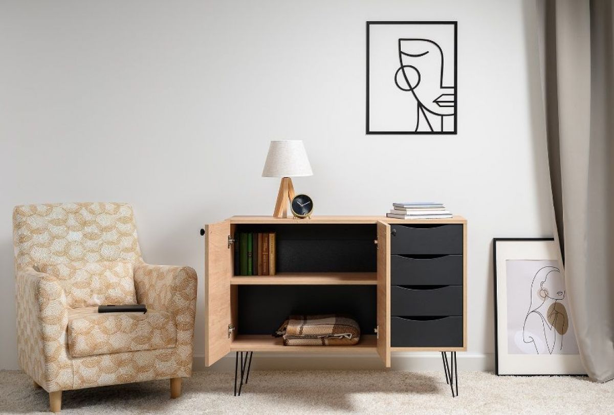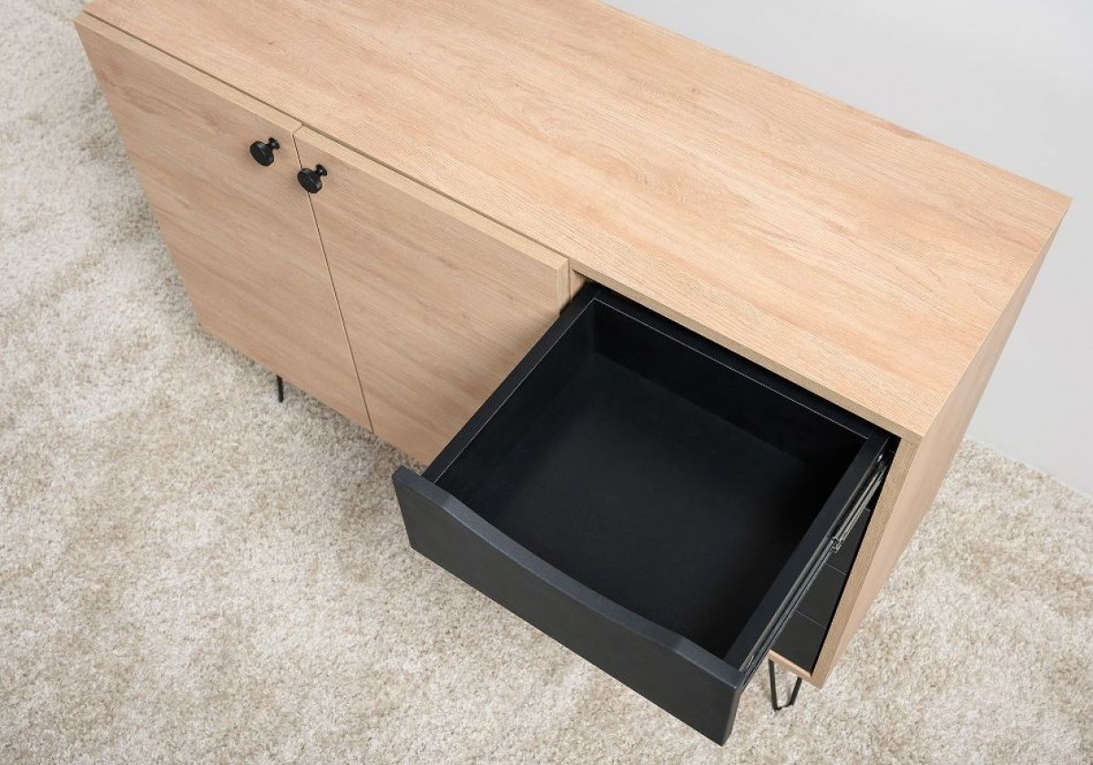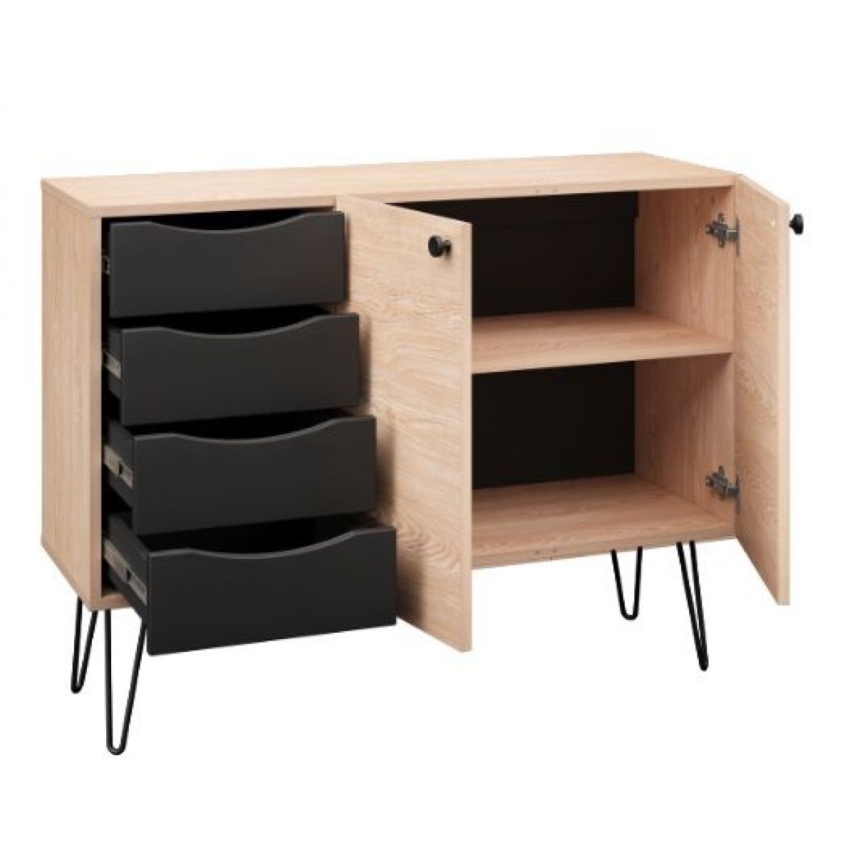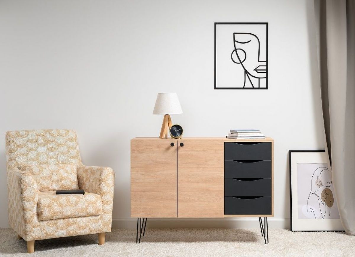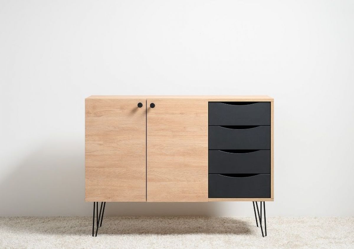 Лаконичный и стильный комод Брюс на высоких металлических опорах будет уместен в интерьере современной гостиной, спальни, прихожей.