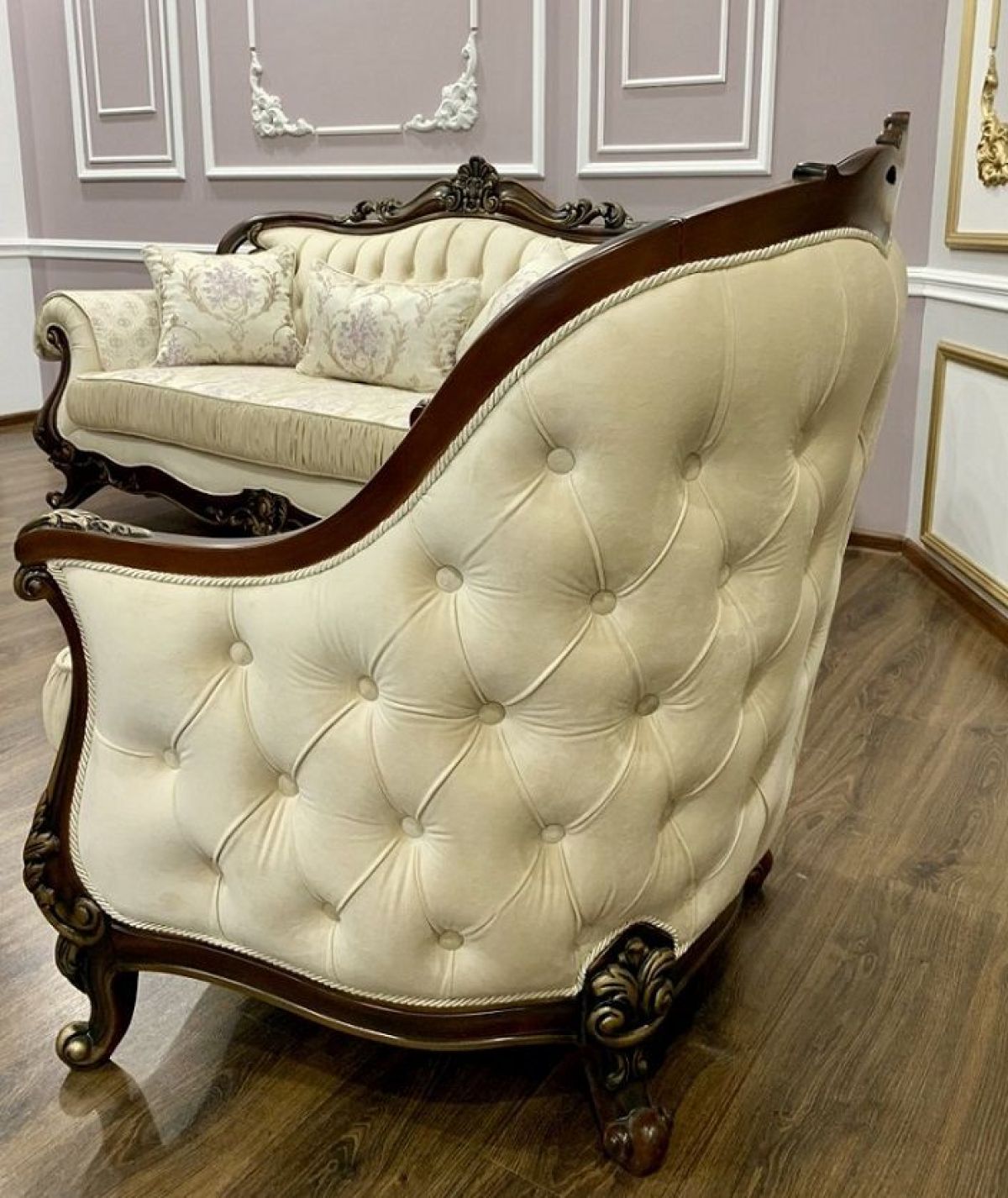 Комплект мягкой мебели "Мона Лиза" создаст неповторимую атмосферу роскоши и уюта в вашей гостиной. Мягкая мебель выполнена в классическом стиле и великолепно сочетается с другой мебелью в данном цвете фабрики "Эра-Мебель".