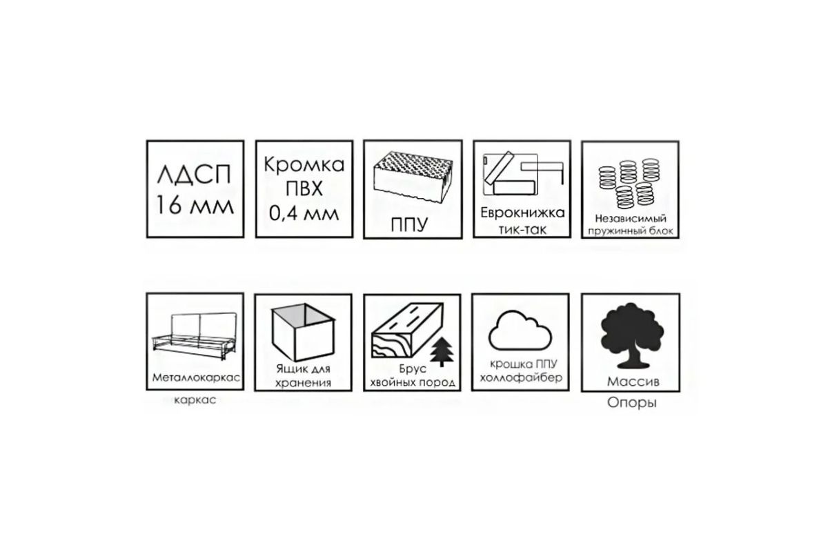 Материал: ЛДСП 16 мм; Кромка ПВХ – 0,4 мм; ППУ