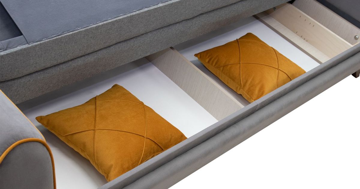 Бельевой ящик: Есть, с перегородкой по центру (2 отделения), размер отделения (ДxШ, мм): 890 x 840 x 200