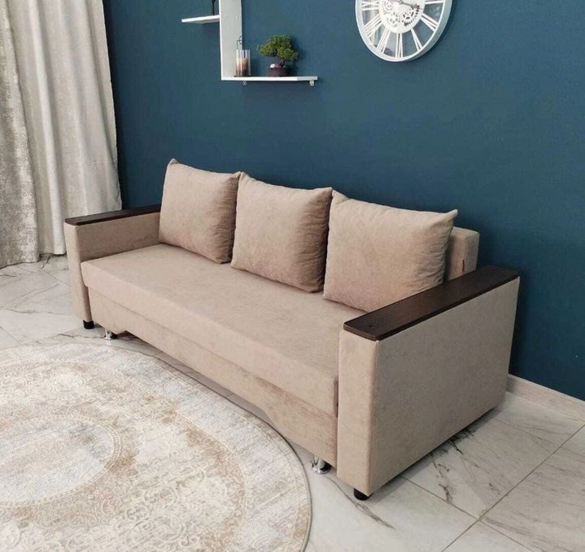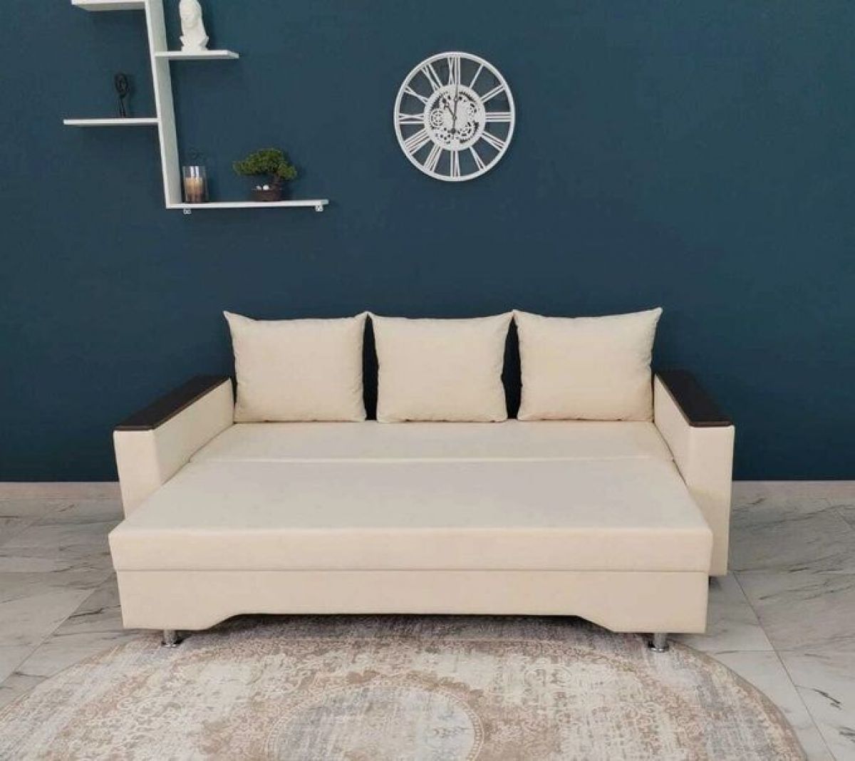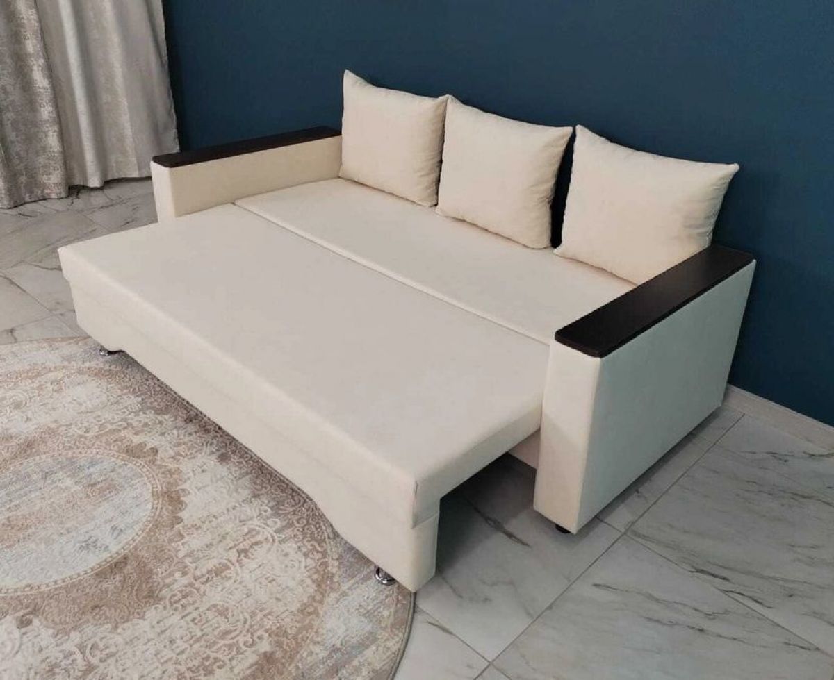 Достоинства: ровное спальное место, лёгкость процесса трансформации дивана, ёмкий бельевой ящик, прочность механизма, долговечность конструкции.