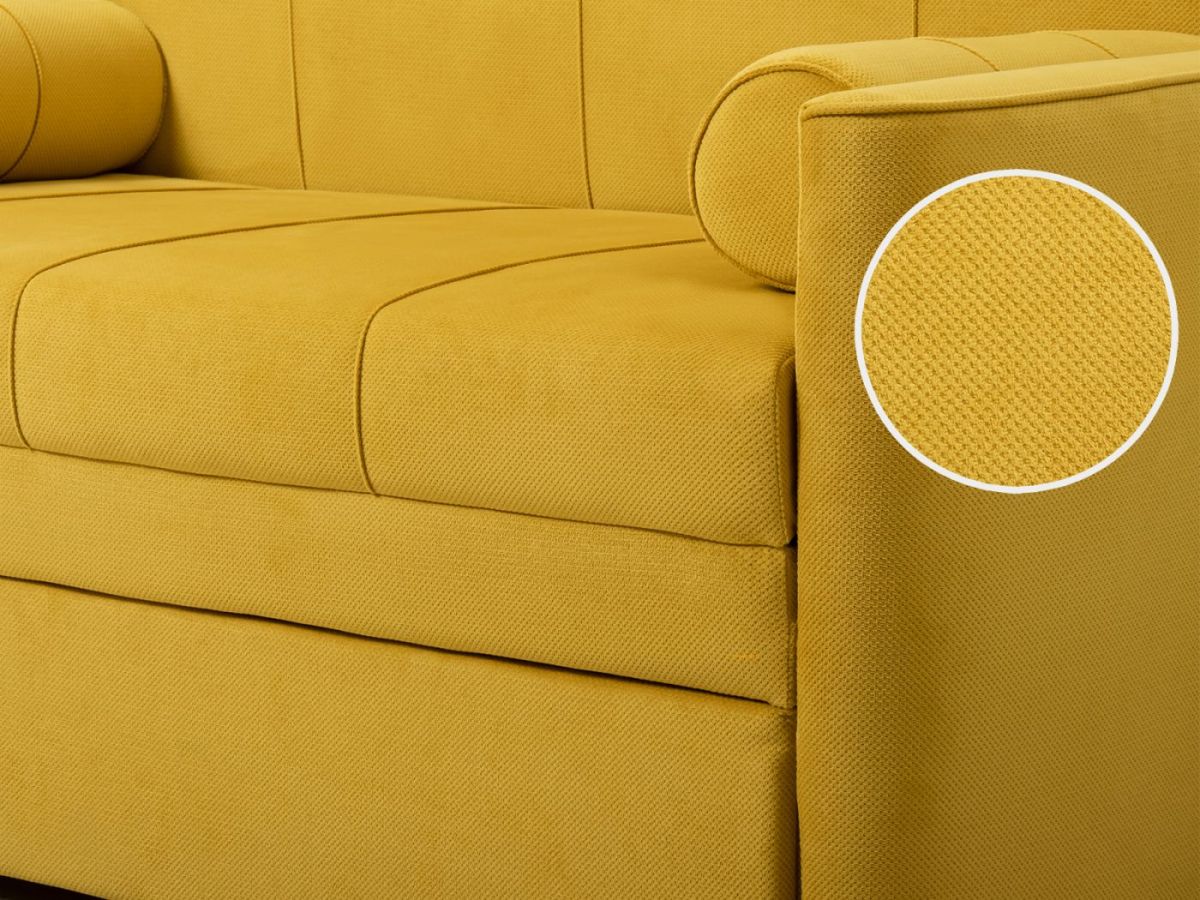 Декор: На фронтальной части спинки дивана прострочены защипы (3 шт.). По торцам втачен кант. На декоративных валиках прострочены защипы -2 шт. и защип вдоль круглого торца. Сидение имеет 3 защипа. Верхний торец подлокотников полукруглый, на ребре полукруга втачен кант.