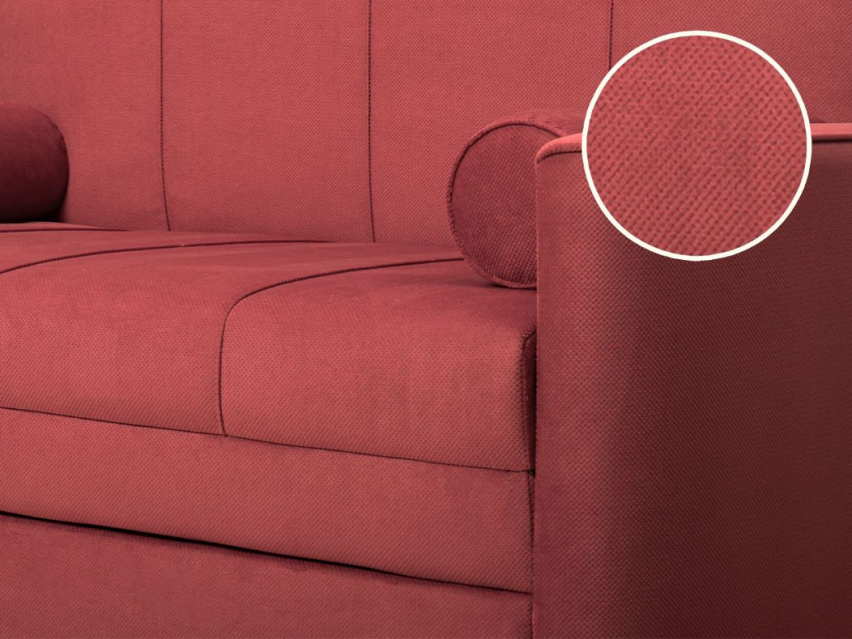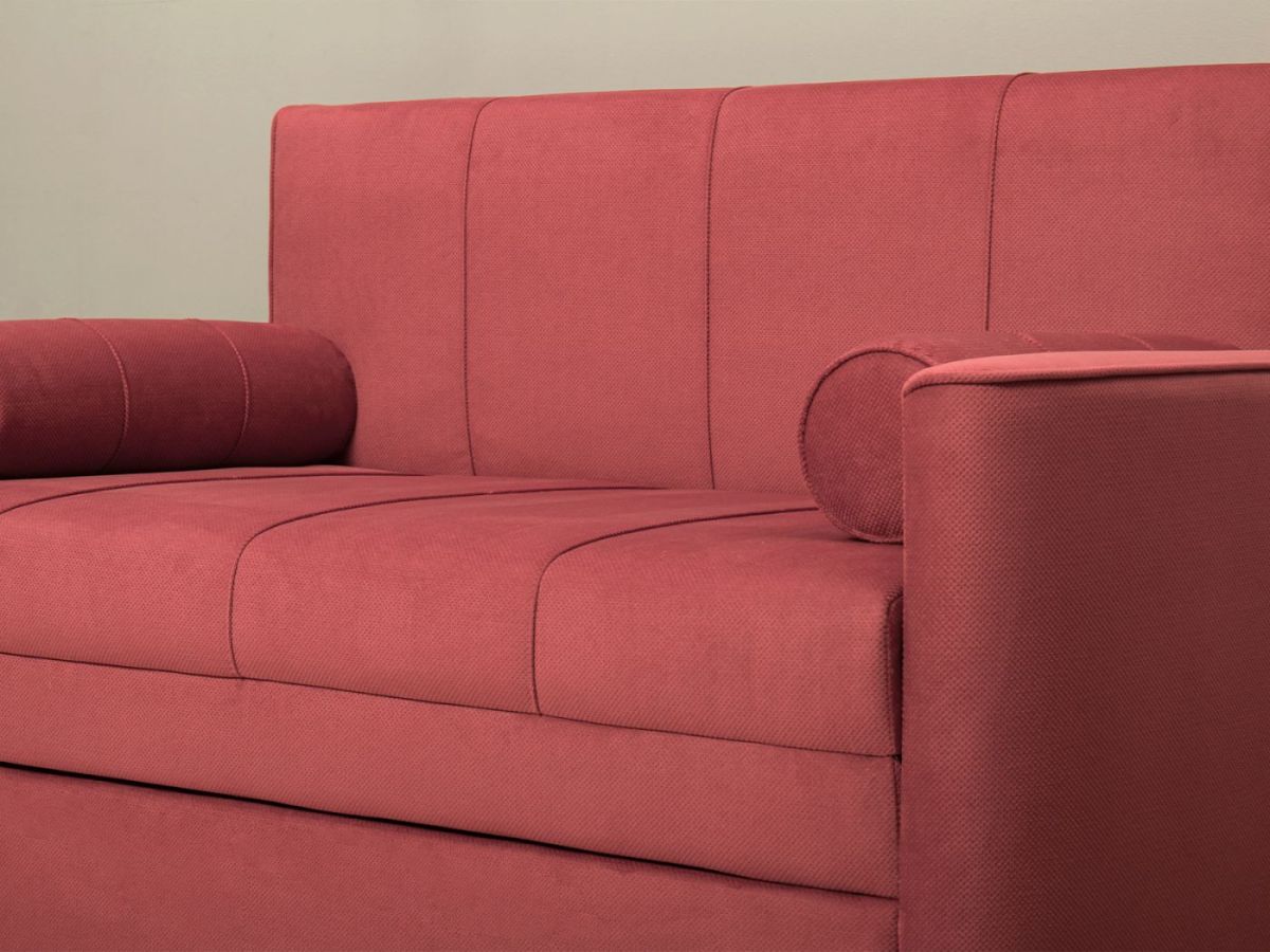 Декор: На фронтальной части спинки дивана прострочены защипы (3 шт.). По торцам втачен кант. На декоративных валиках прострочены защипы -2 шт. и защип вдоль круглого торца. Сидение имеет 3 защипа. Верхний торец подлокотников полукруглый, на ребре полукруга втачен кант.