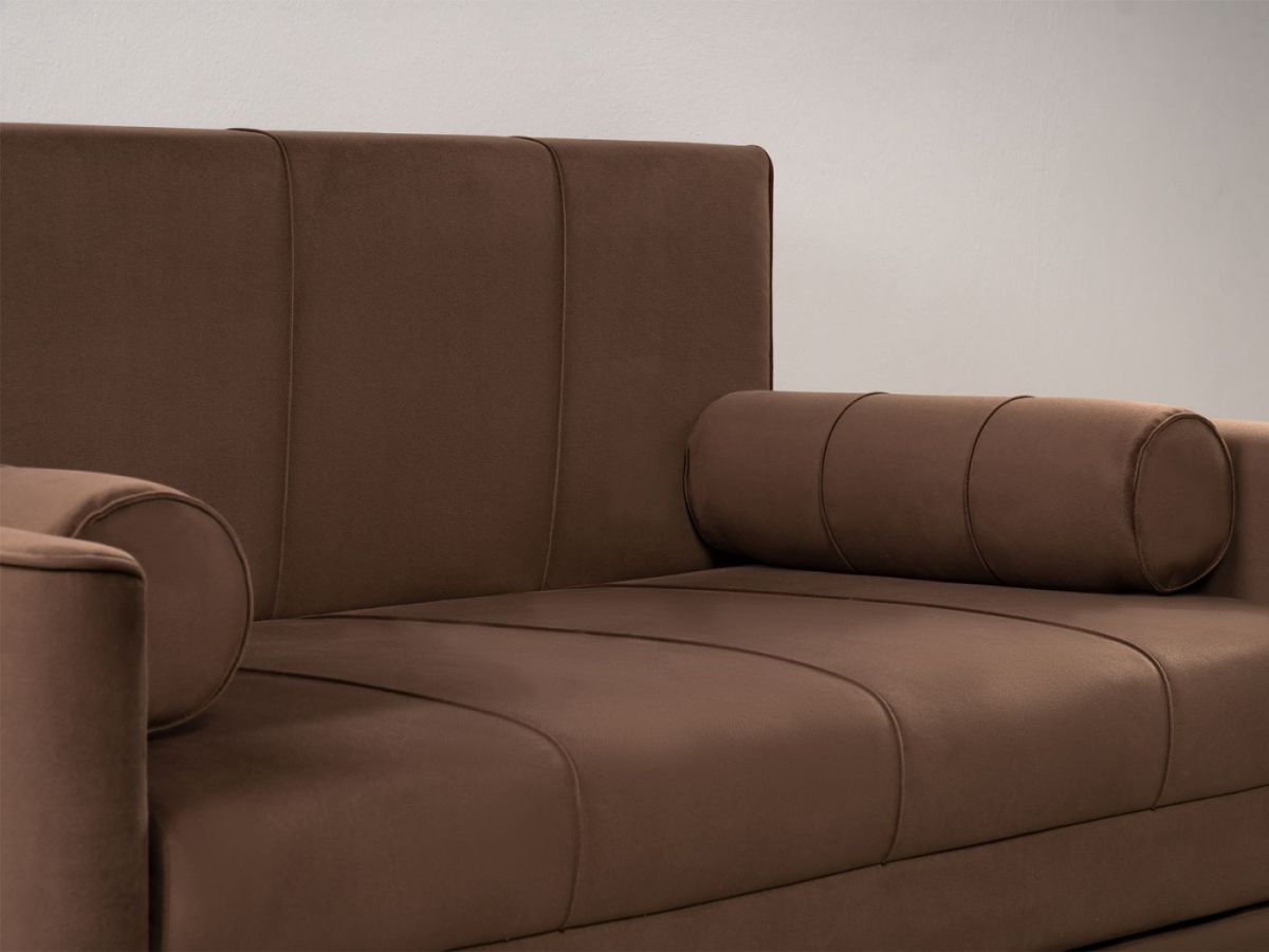 Декор: На фронтальной части спинки дивана прострочены защипы (3 шт.). По торцам втачен кант. На декоративных валиках прострочены защипы -2 шт. и защип вдоль круглого торца. Сидение имеет 3 защипа. Верхний торец подлокотников полукруглый, на ребре полукруга втачен кант.