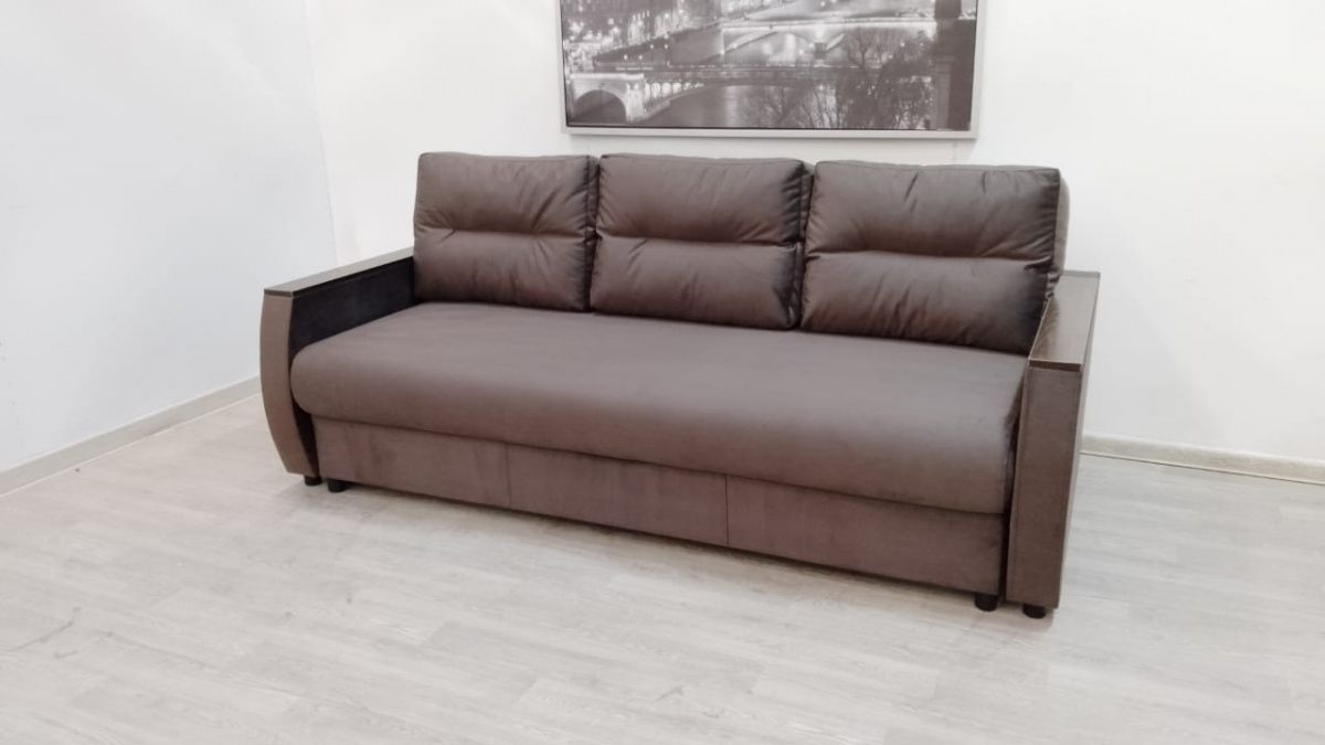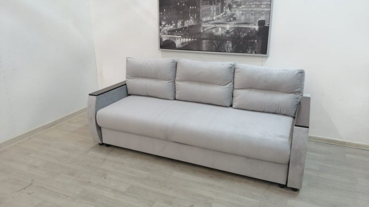 Прекрасное сочетание элегантности и изящества. Подлокотники с декоративными накладками делают его безупречным для любого интерьерного решения. Механизм трансформации «Пантограф» (тик-так) позволяет без особых усилий формировать ровное спальное место. Так же имеется вместительный короб для постельных принадлежностей.