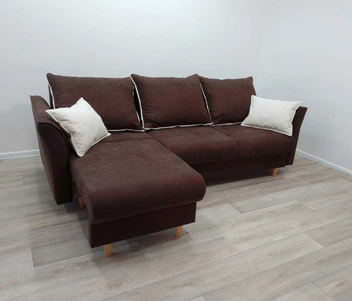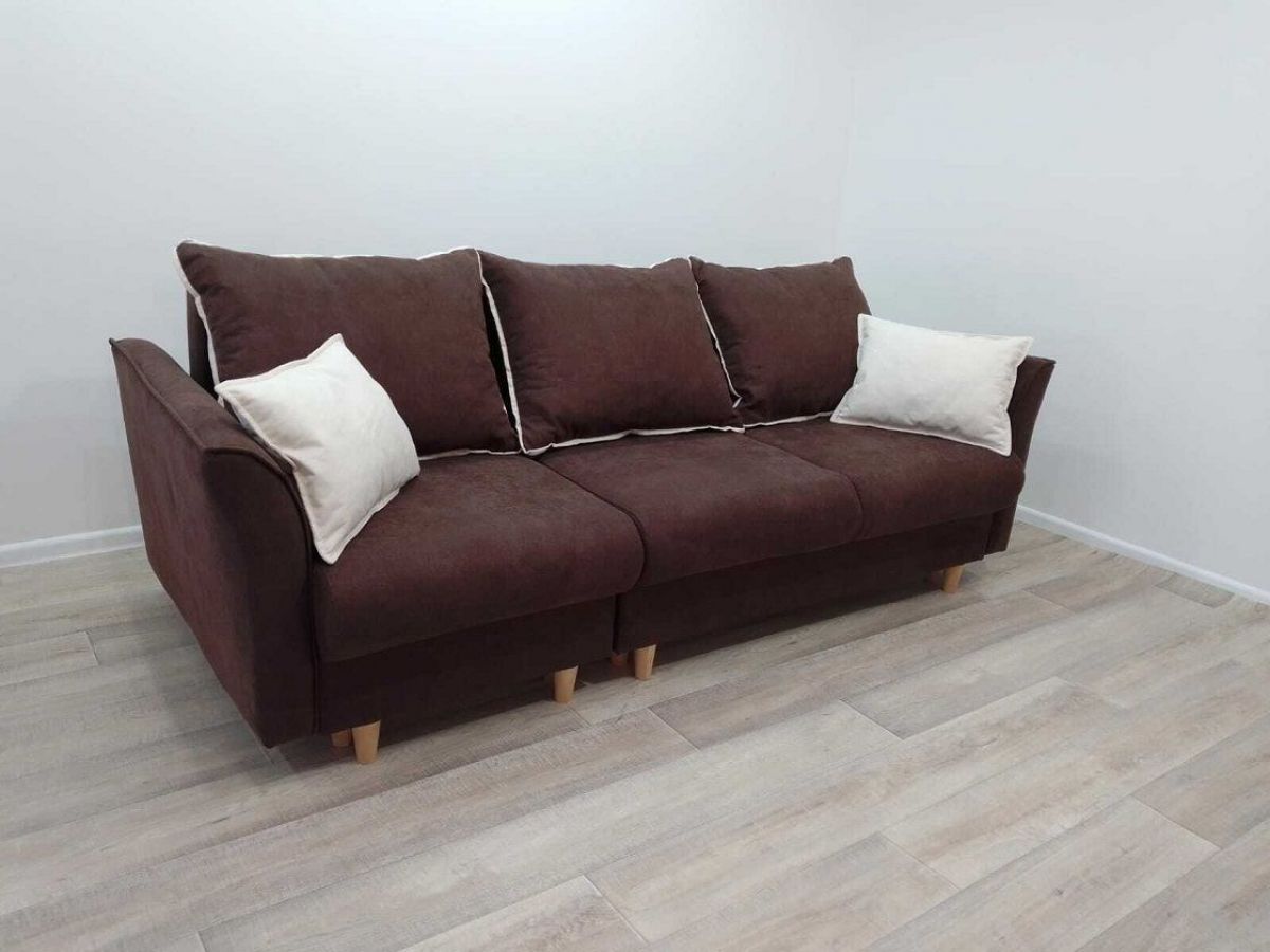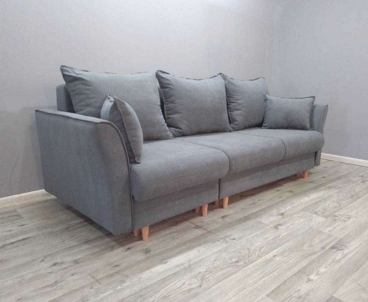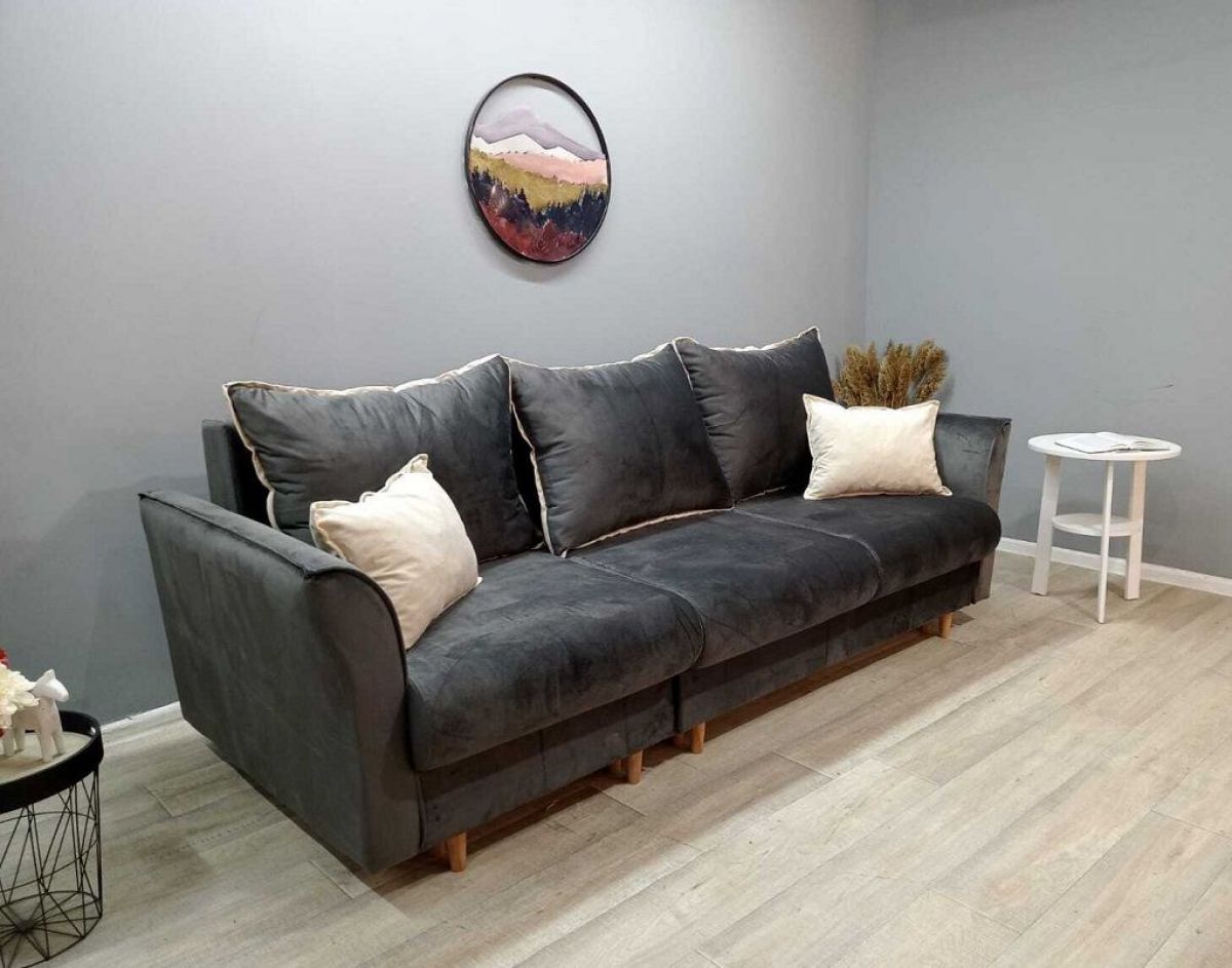 Модель выполнена в трендовом скандинавском стиле. Благодаря лаконичной форме и изящным ножкам, диван можно обыгрывать в разных интерьерах: от неоклассики до лофта.