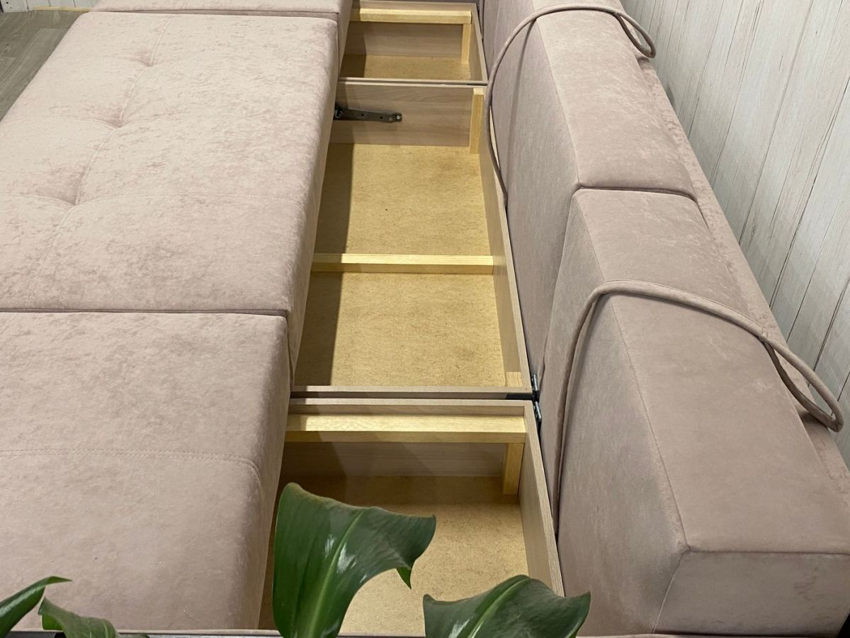 Невероятно удобный диван с надежным механизмом раскладывания и просторным спальным местом. Вместительный короб для белья.