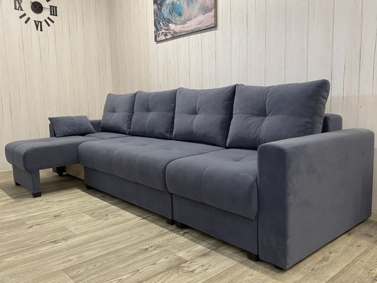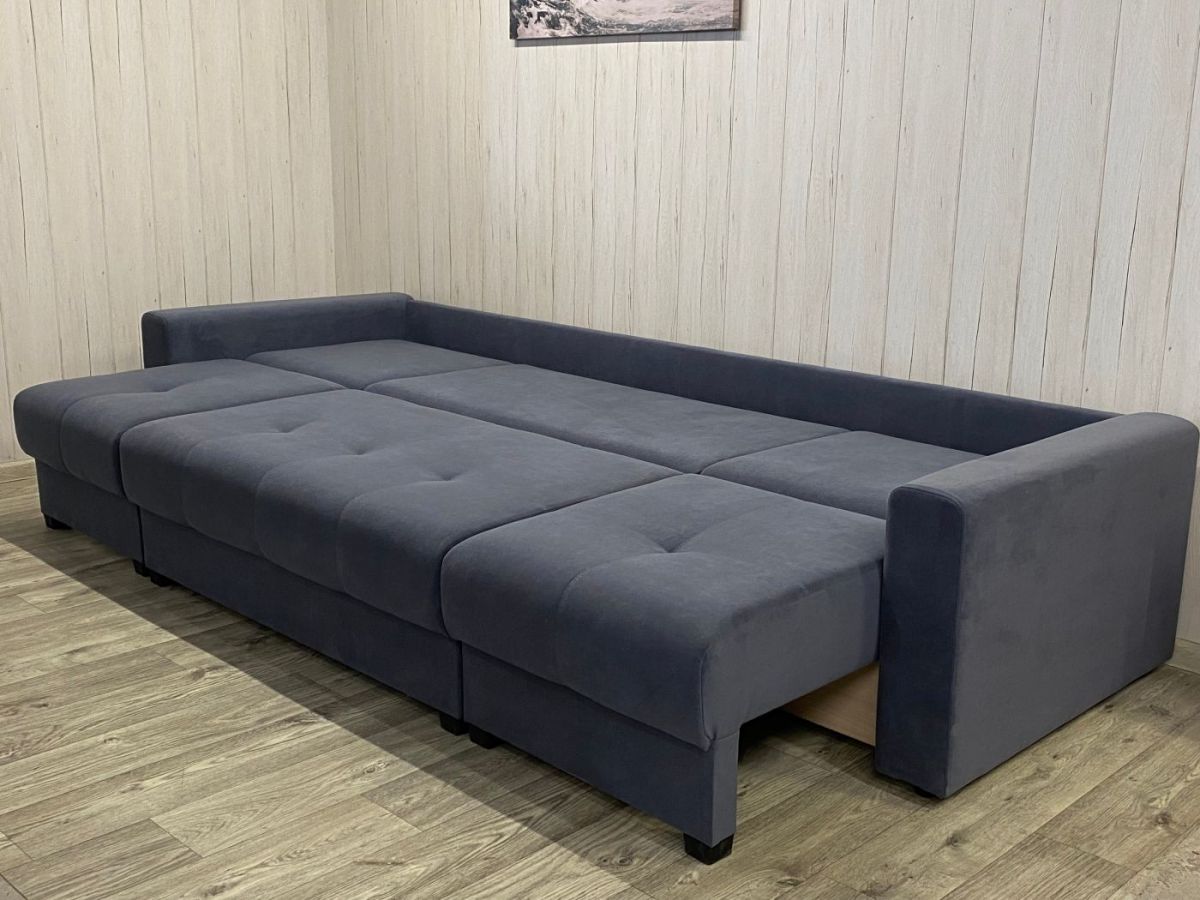 Невероятно удобный диван с надежным механизмом раскладывания и просторным спальным местом. Вместительный короб для белья.