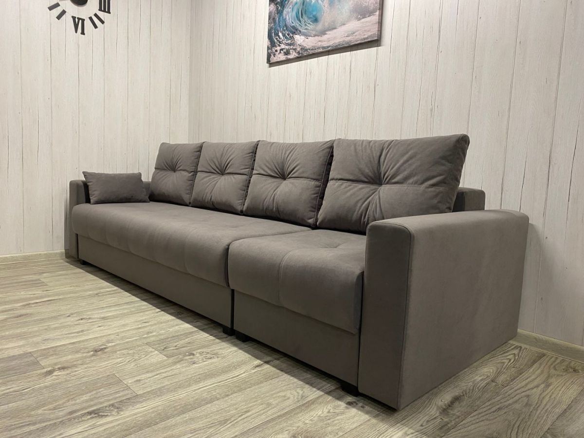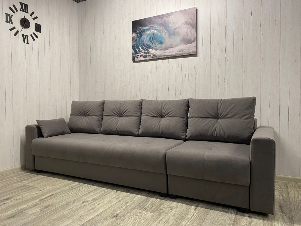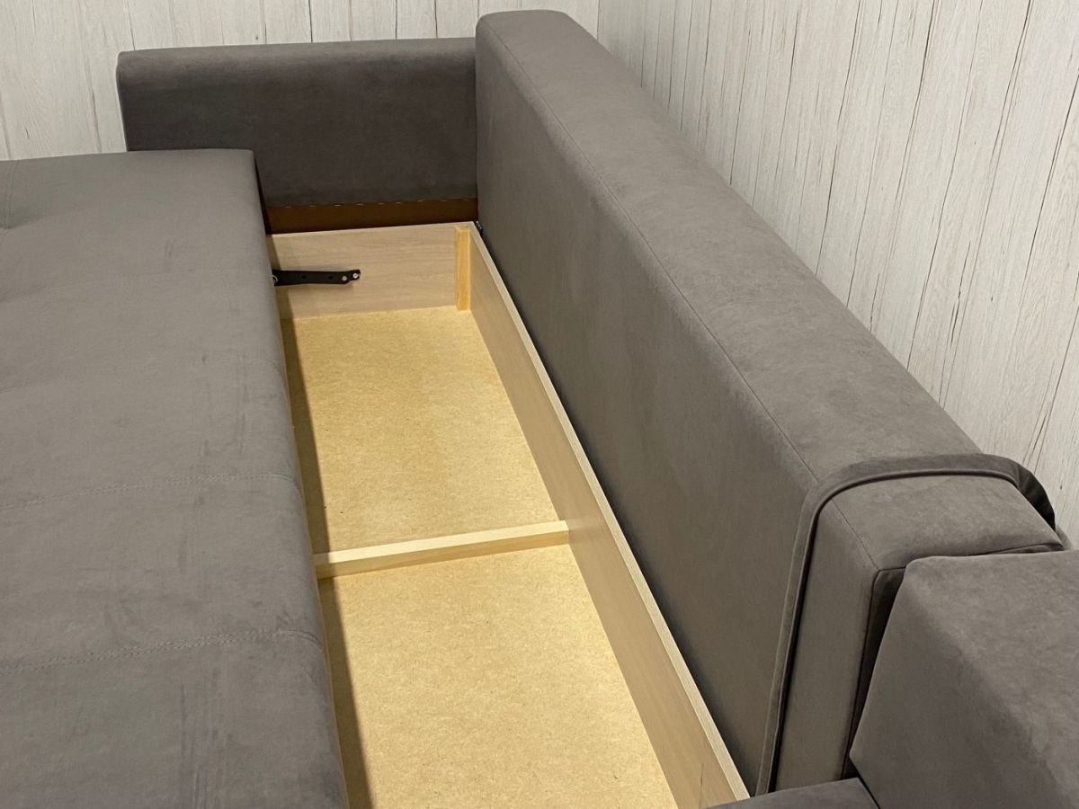 Невероятно удобный диван с надежным механизмом раскладывания и просторным спальным местом. Вместительный короб для белья.