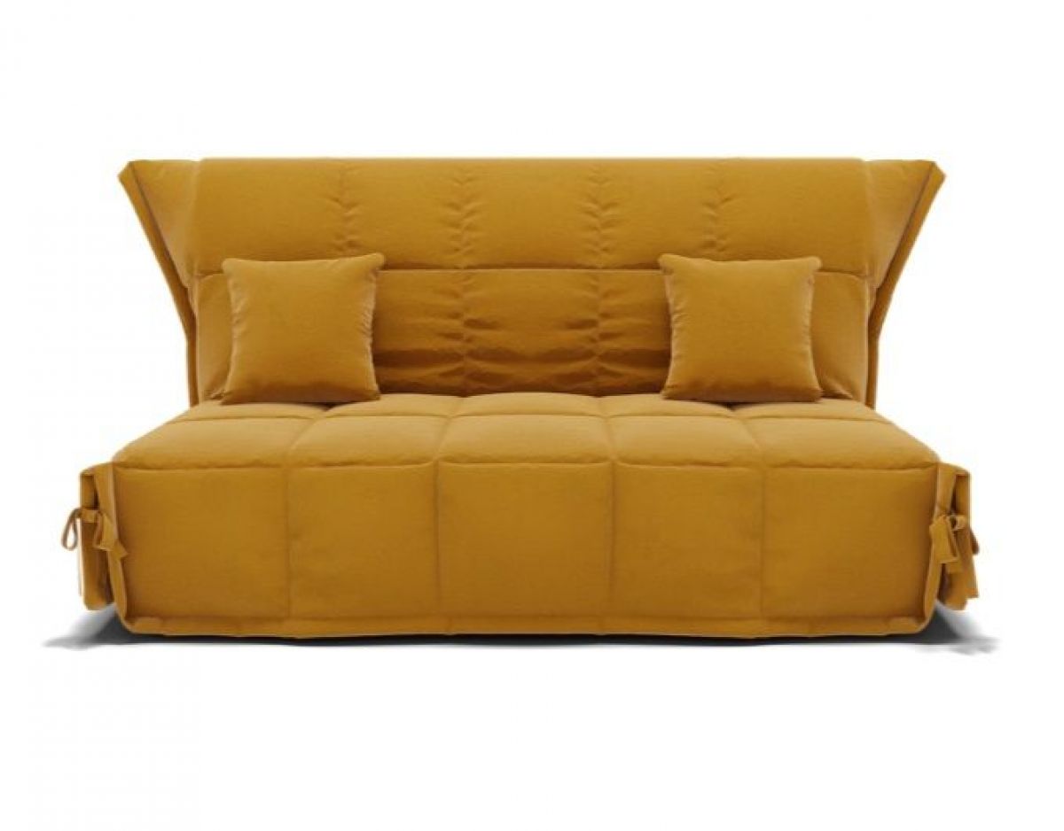 Прямой диван-кровать без подлокотников, с декоративными подушками в комплекте.