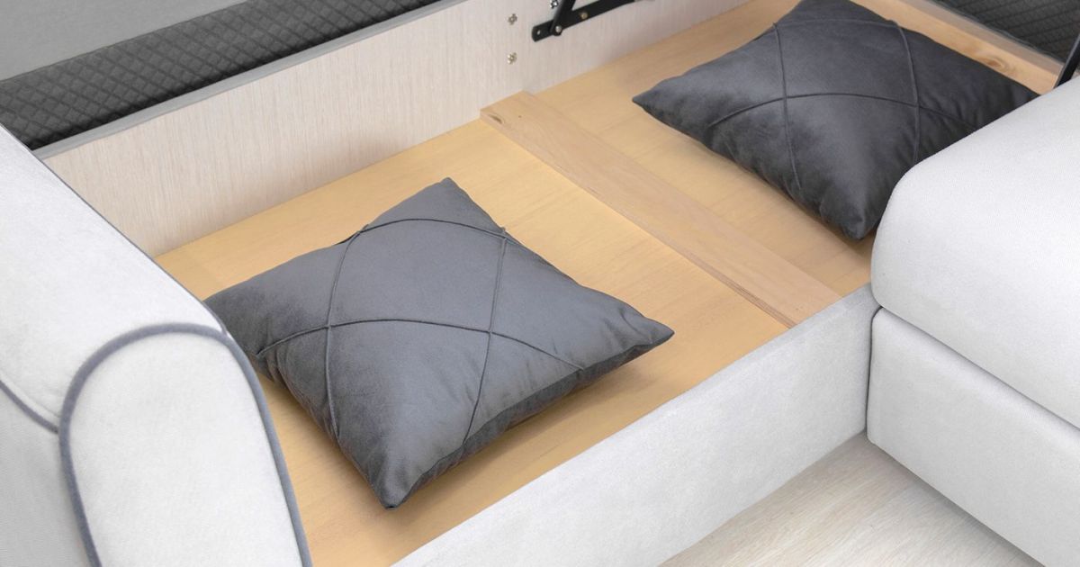 Бельевой ящик: В оттоманке, одно отделение, размер отделения (ДxШ): 1533 x 770 x 200 мм