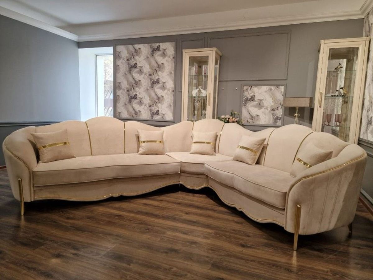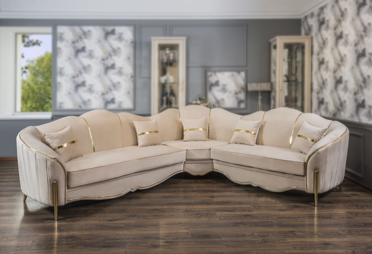 Диван угловой Lara 3-у-2 (бежевый/золото)