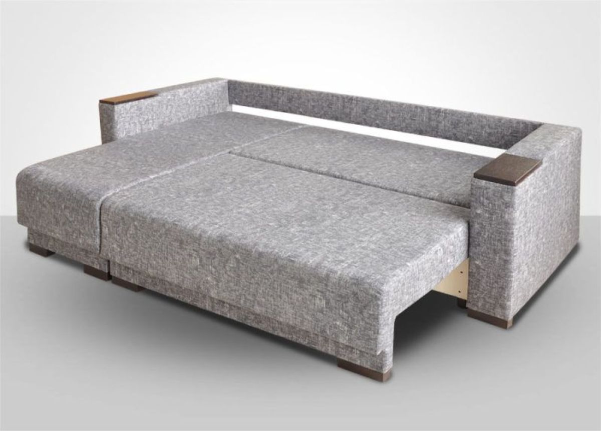 Отличается лаконичностью и функциональностью современного стиля. Модель выгодно использует доступное пространство и организует комфортную зону отдыха даже в небольшом помещении. Диван совмещен с оттоманкой и оборудован широкими подлокотниками с термостойкими накладками и эффектными мягкими подушками спинки. Механизм «Еврокнижка» легко и быстро превращает диван в двуспальную кровать.