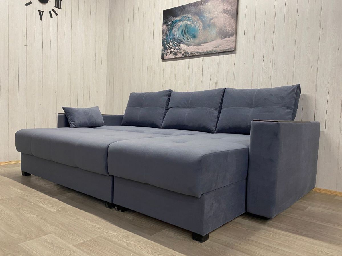 Невероятно удобный диван с надежным механизмом раскладывания и просторным спальным местом. Вместительный короб для белья.