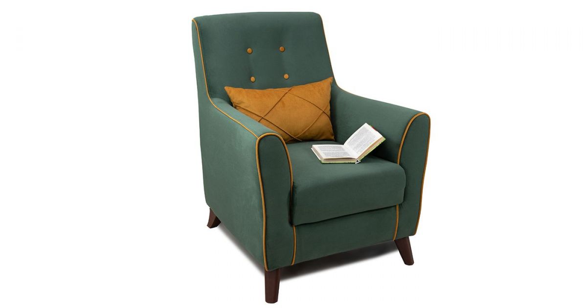 Декор: Декоративный кант на кресле, защипы на декоративной подушке, пуговицы на спинке