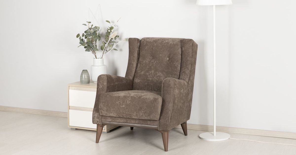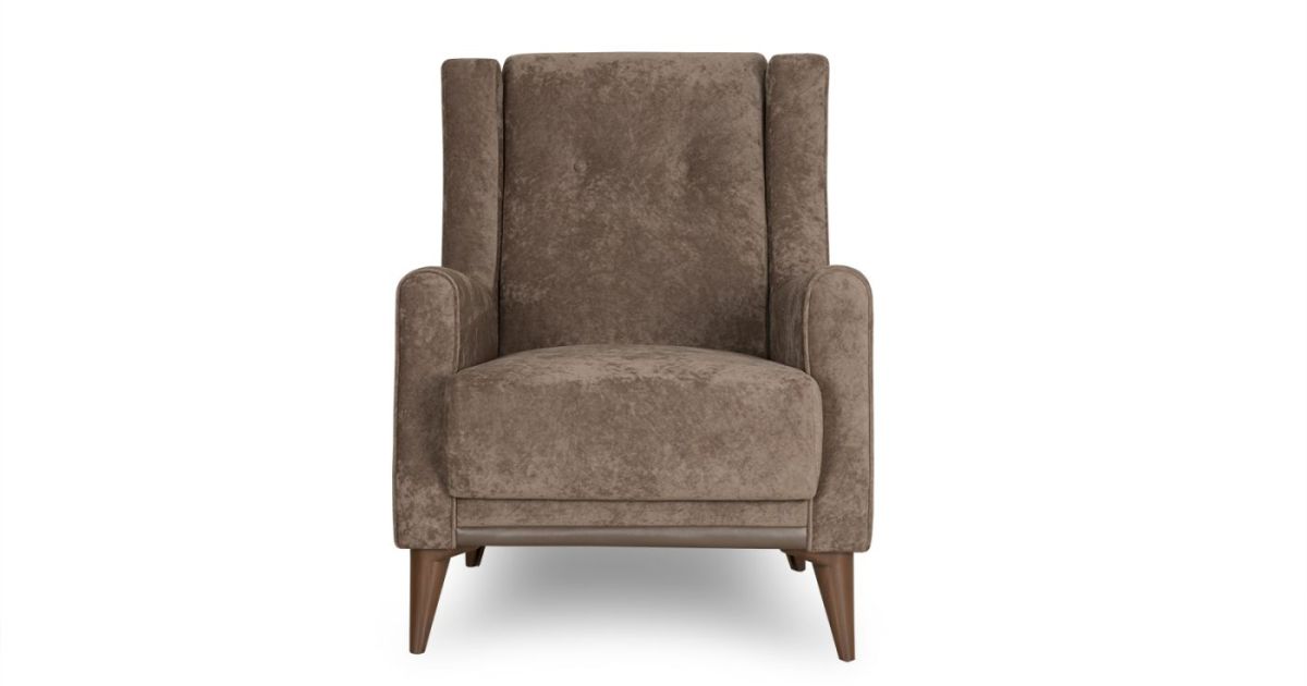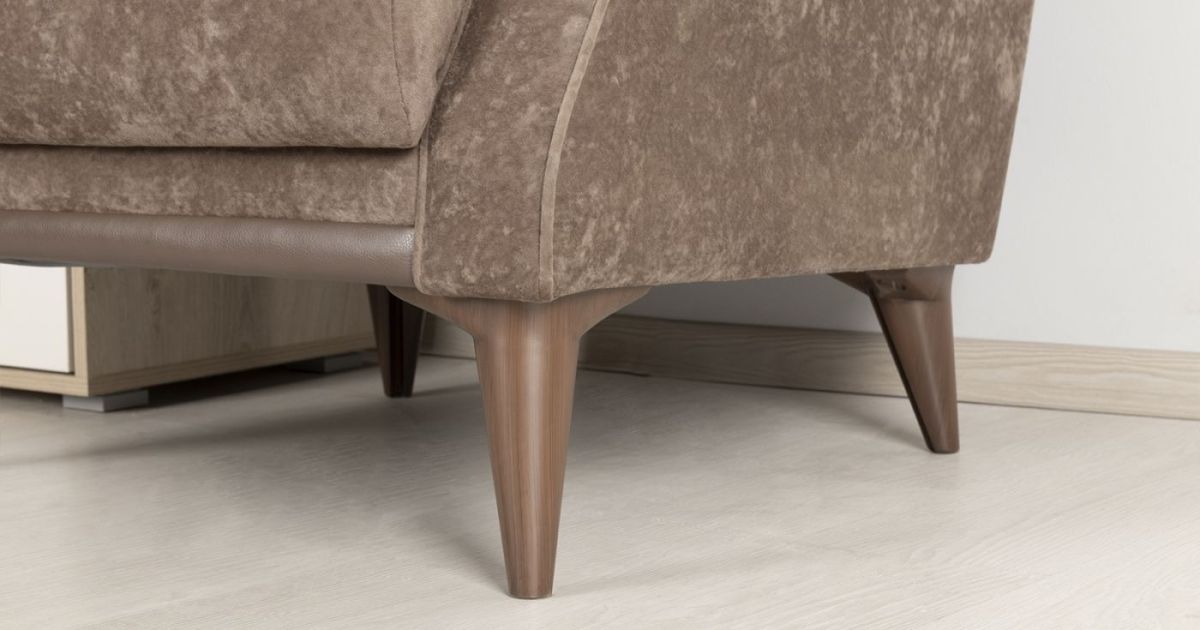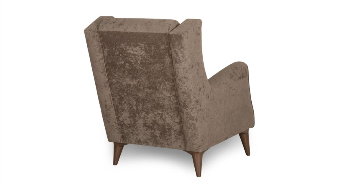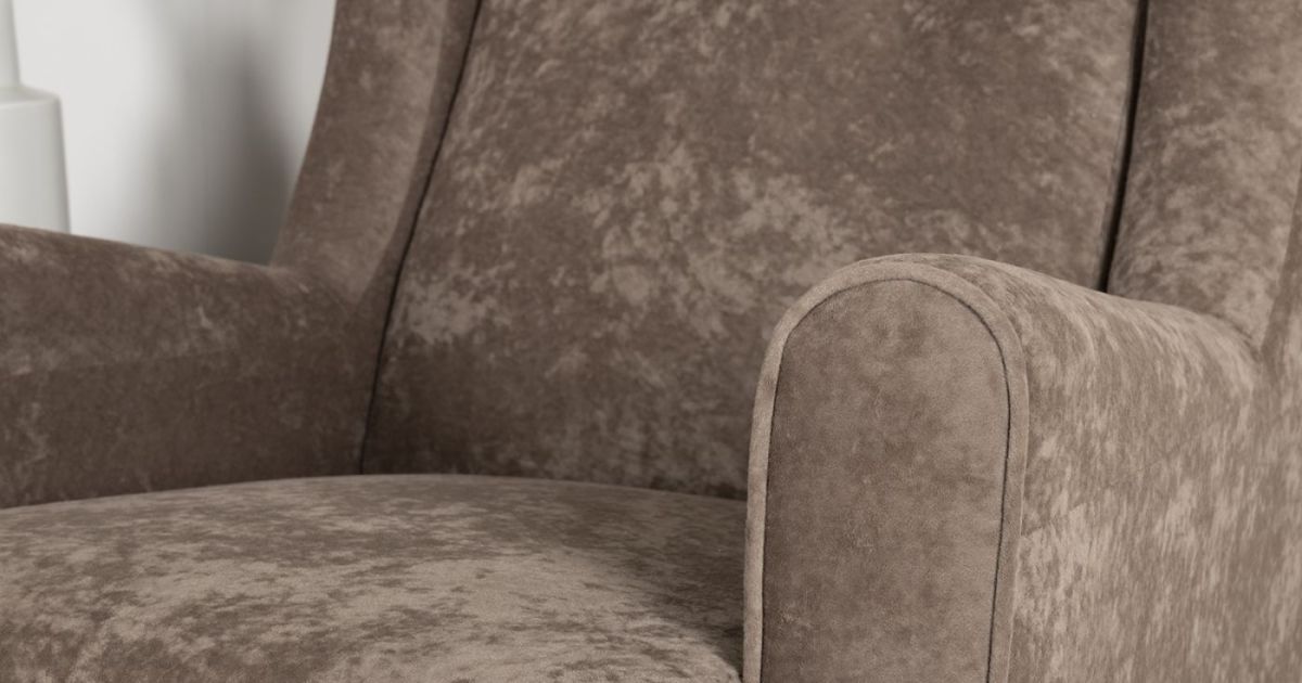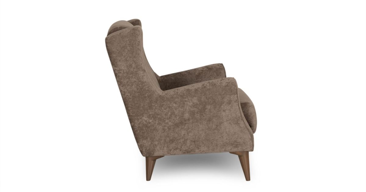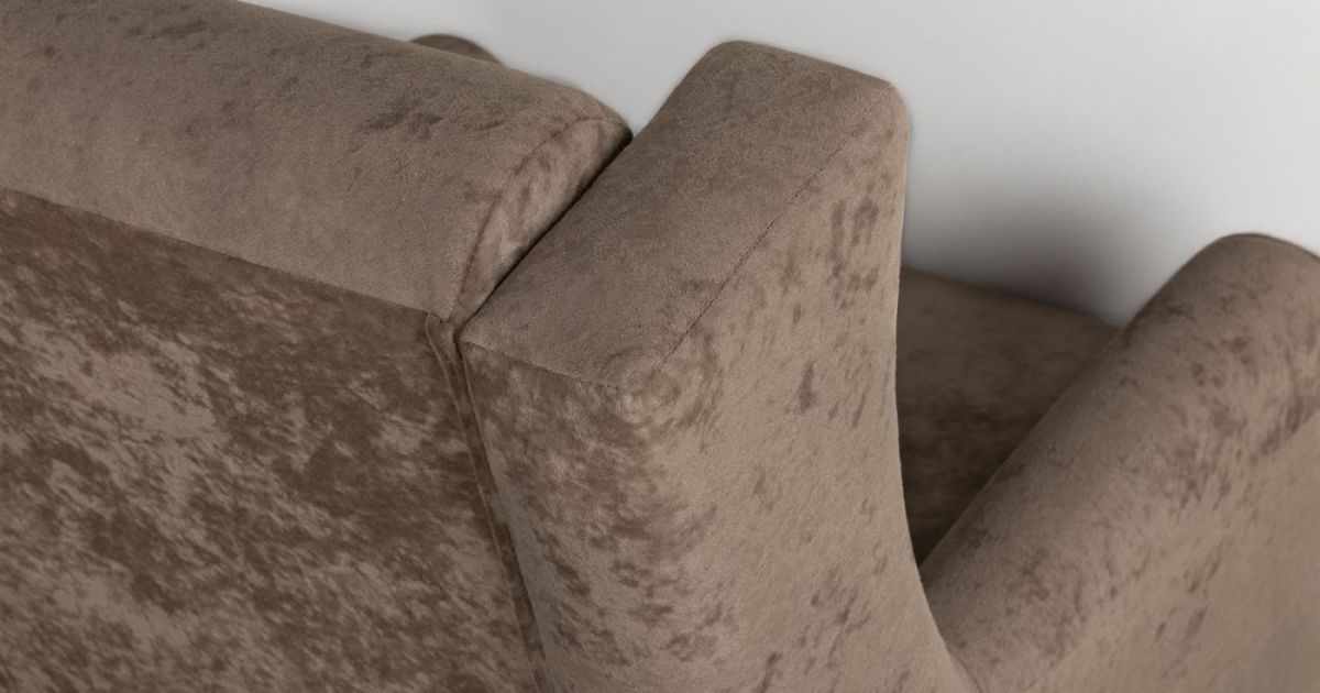 Декор: Декоративный кант из основной ткани по переднему торцу подлокотника; Утяжка спинки на 2 декоративные пуговицы из основного материала; Декоративный элемент царги из материала-компаньона.