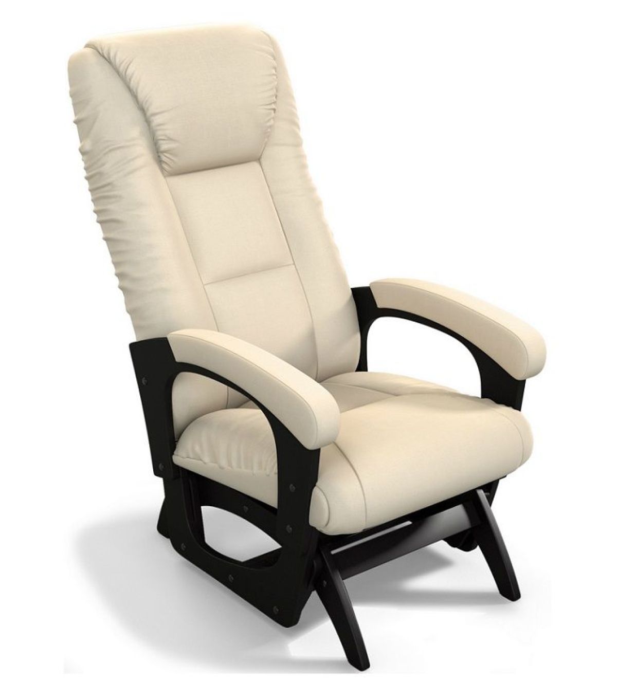 Для комфортного отдыха имеет маятниковый механизм глайдер, который выполняет классическую функцию покачивания, при этом она не проминает напольное покрытие. Кресло обтянуто мебельной тканью или искусственной кожей, каркас-дерево, боковины выполнены в виде криволинейных деталей, образующих ножки-опоры, материал боковины фанера. На боковинах имеются мягкие подлокотники.
