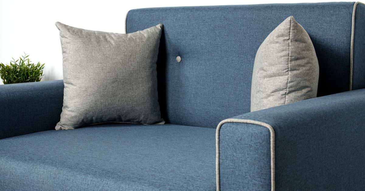 Декор: Декоративный контрастный кант по торцу спинки, торцу подлокотника, по верхнему срезу царги. Утяжки с пуговицами на спинке дивана. Две декоративные подушки в контрастной ткани.
