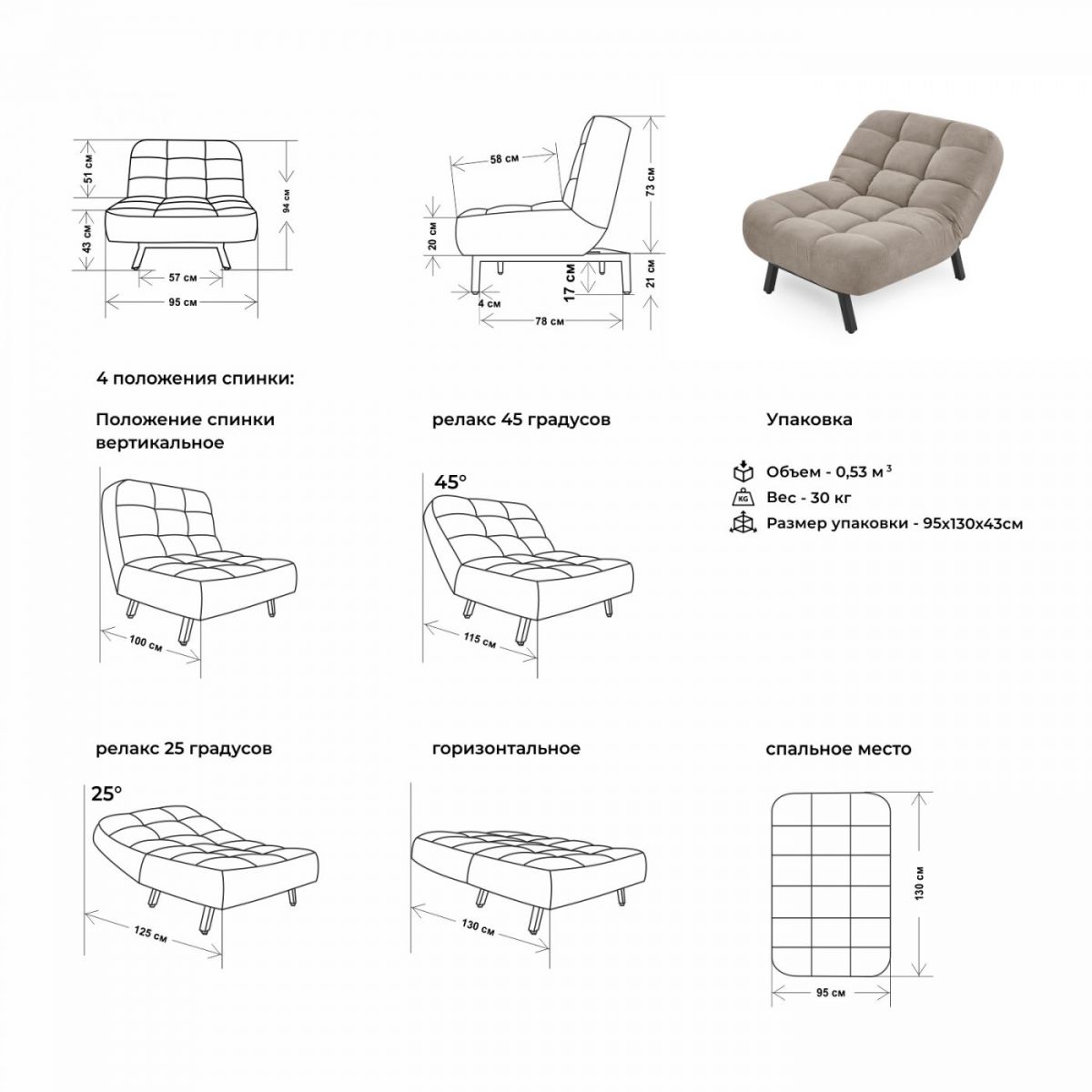 Спальное место: 950*1300 мм
