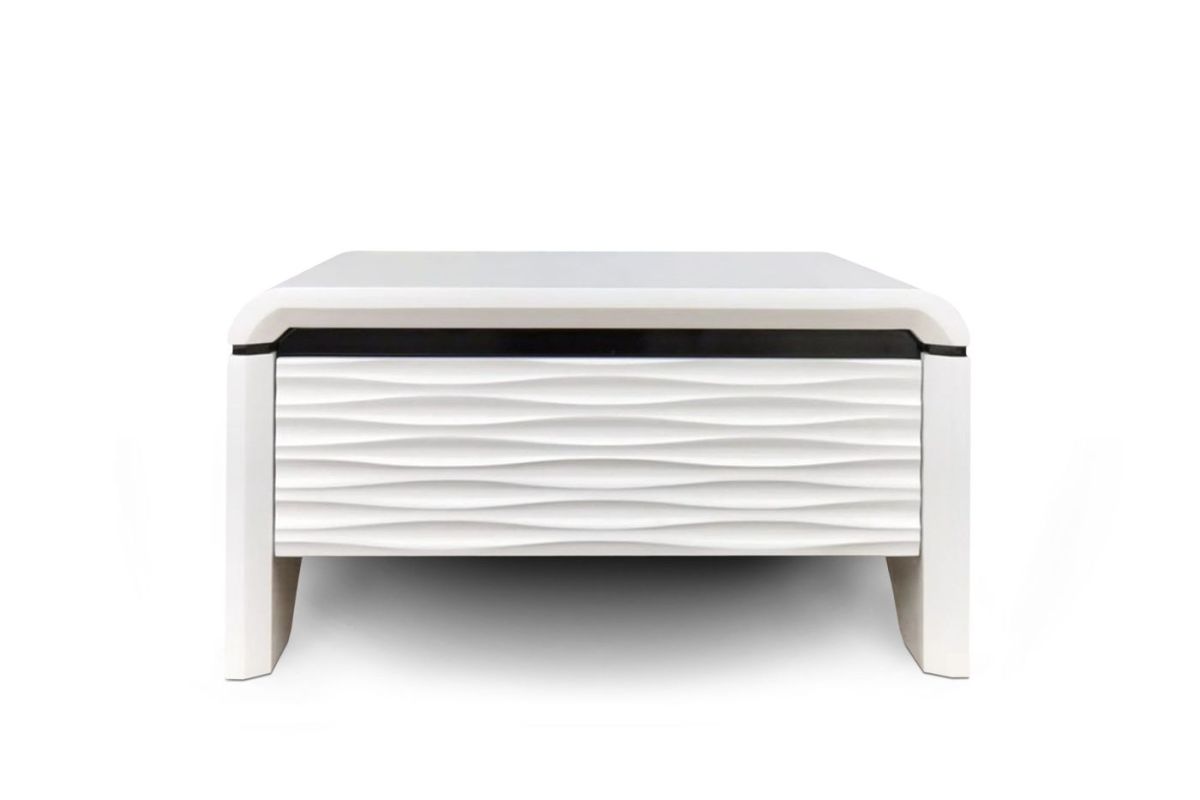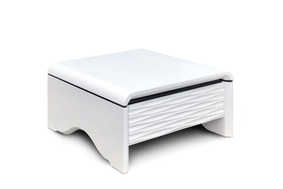Квадратный журнальный столик с выдвижным ящиком на шариковых направляющих. Размер ящика: 570х350хh130 мм.