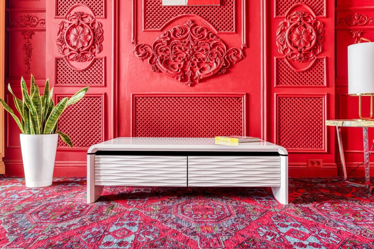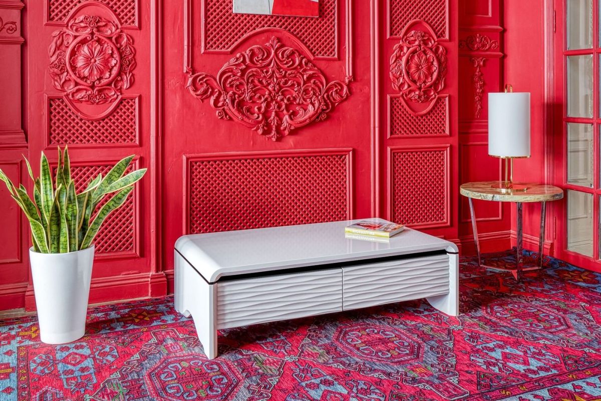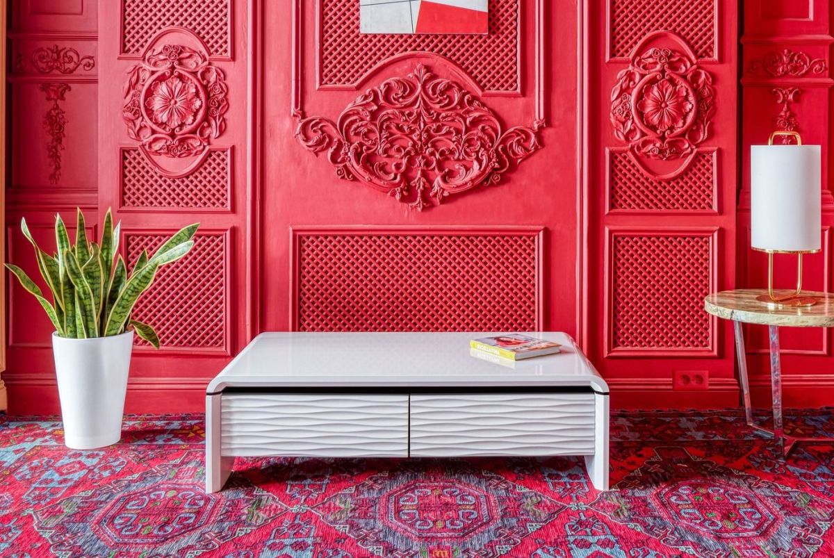 Отличительной чертой серии 3D-Modo является применением объемного рисунка в виде асинхронных волн на фасадах ящиков и на стенке с обратной стороны. Данный декоративный прием характерен для стиля неомодерн, контемп.