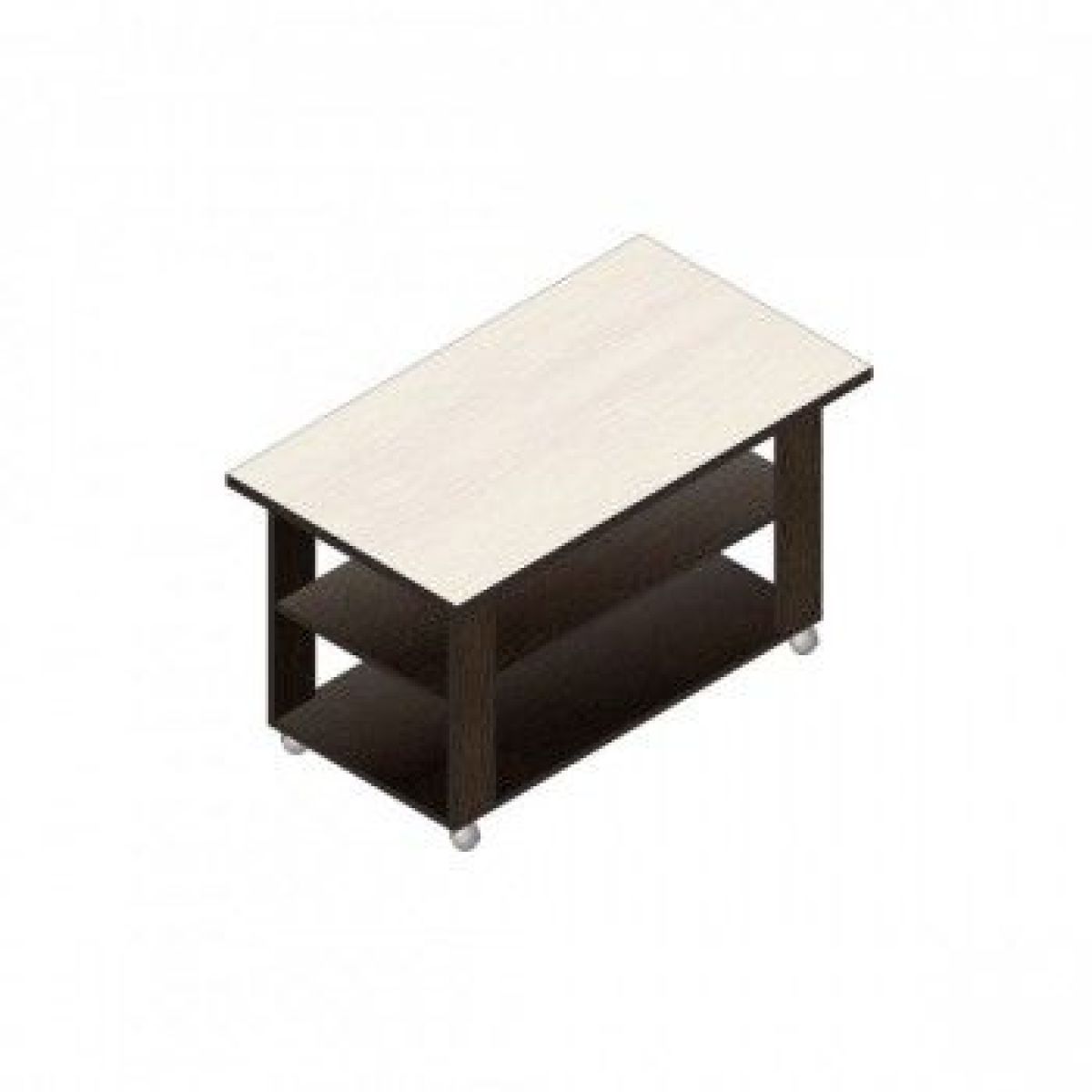Топ из ДСП 22 мм., с кромкой ПВХ 2 мм., остальные элементы из ДСП 16 мм., с кромкой ПВХ 0,45 мм, колеса.