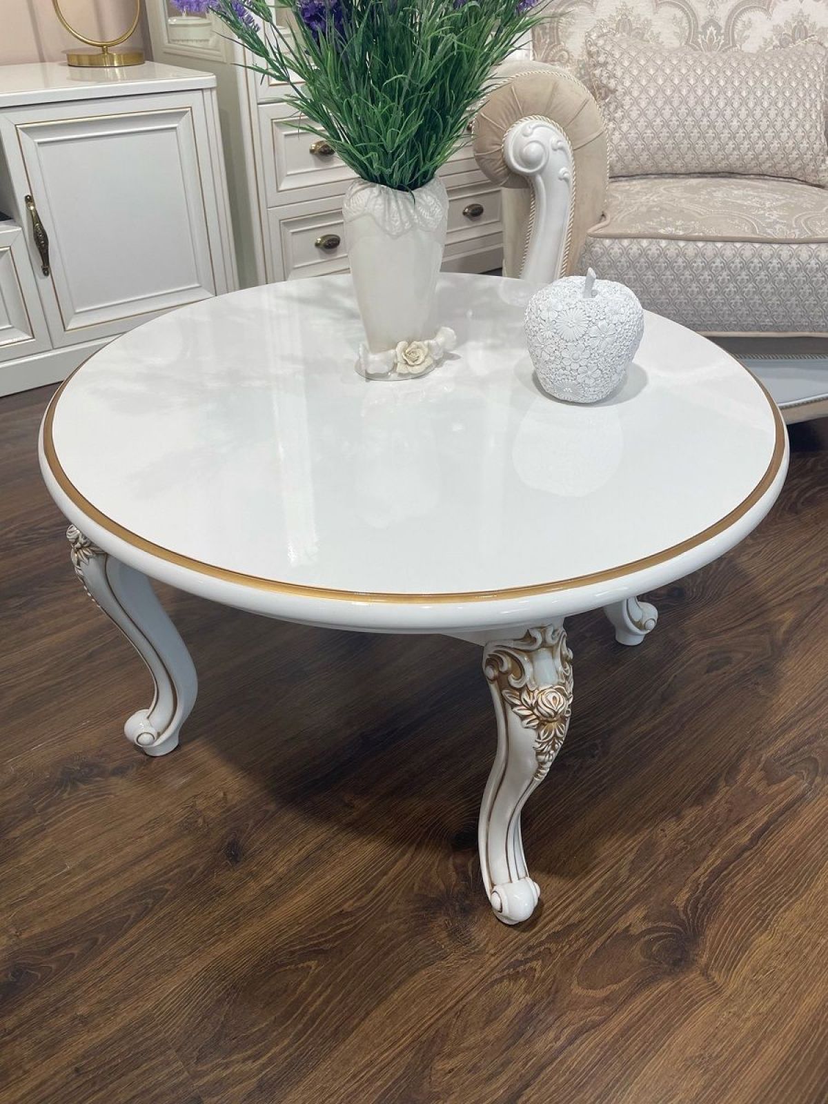 Стол журнальный круглый Натали (белый глянец)