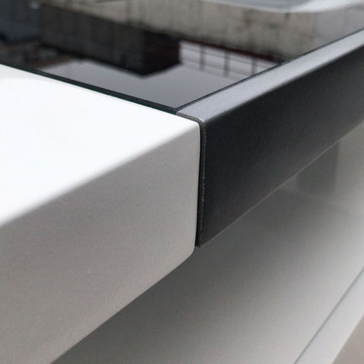 Рамка под стекло и цилиндрические опоры покрыты лаком серого цвета Gematit.