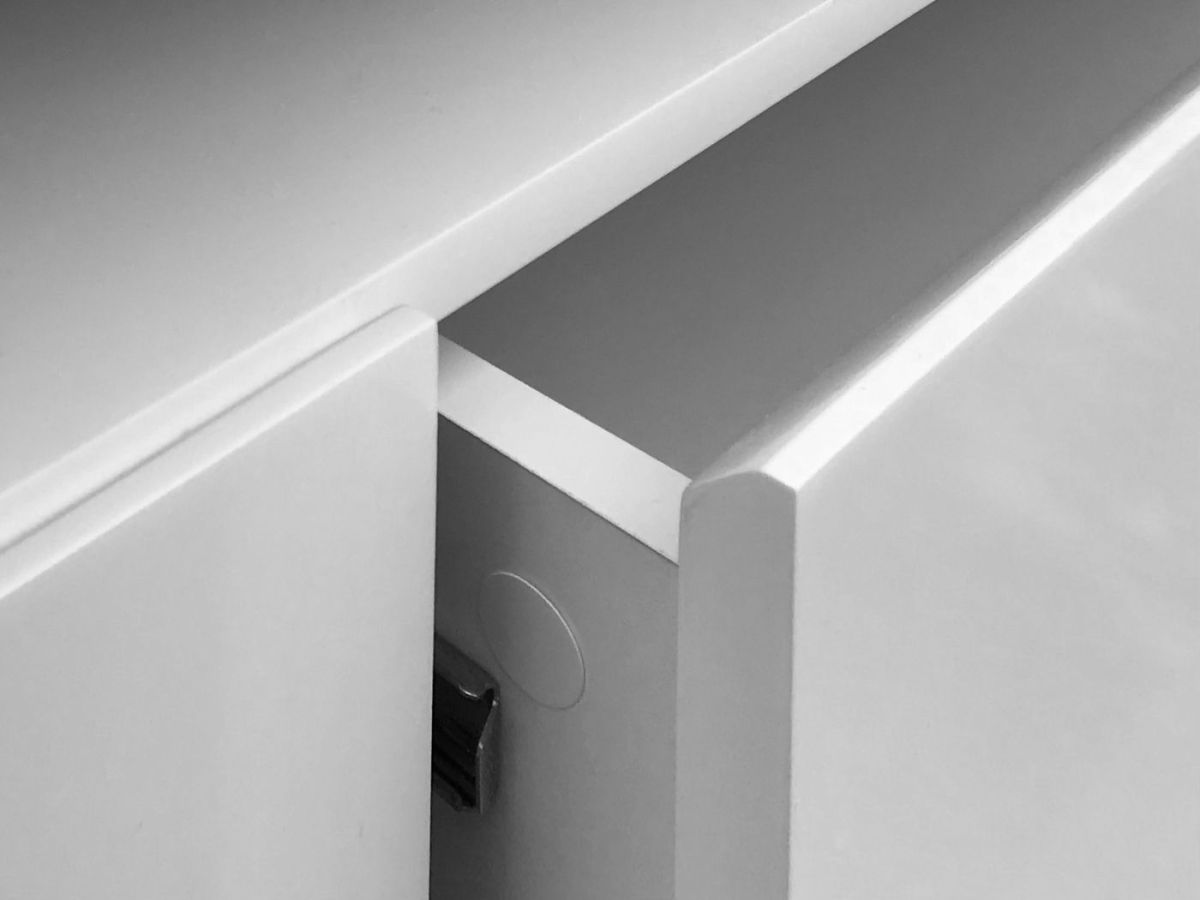Тумба изготовлена по уникальной бесшовной технологии угловых соединений. Благодаря этому достигается эффект монолитного корпуса с гладкой поверхностью и плавными изгибами. Поставляется в собранном виде, в картонной упаковке с прокладкой листами пенопласта и вспененного полиэтилена.