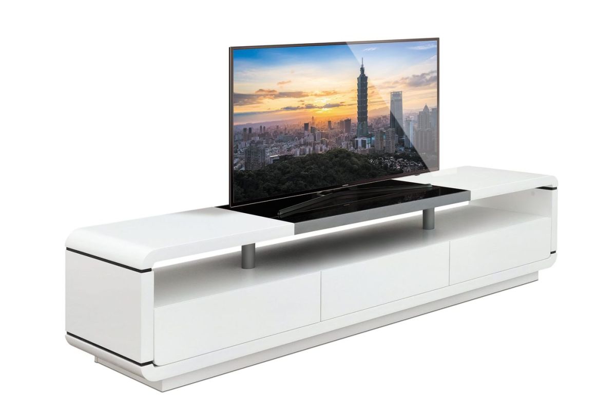 Напольная тумба под телевизор с топом черного стекла 850х450 мм, тремя выдвижными ящиками и полкой под аппаратуру. Внутренние размеры ящиков: 560х350хh140 мм. Ширина центральной части полки 870 мм. Высота полки 140 мм. Габариты и конструкция тумбы позволяют устанавливать телевизоры диагональю до 80', весом до 70 кг.