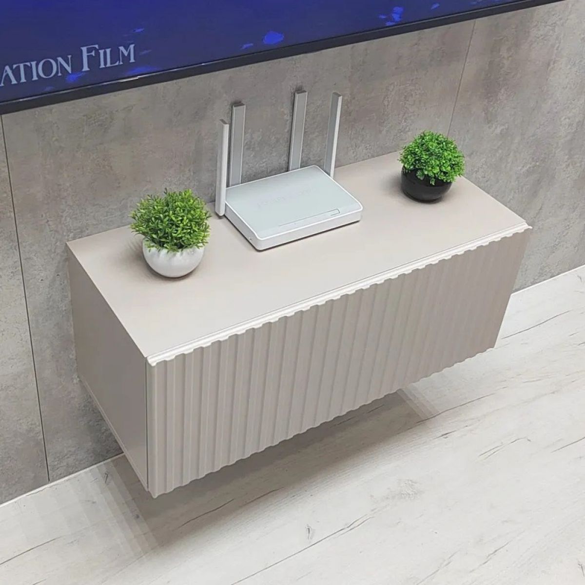 Благодаря своей компактности тумба под ТВ подвесная поможет сэкономить пространство, избежать ощущения загромождённости гостиной, спальни или детской комнаты, а рифлёный фасад будет акцентировать