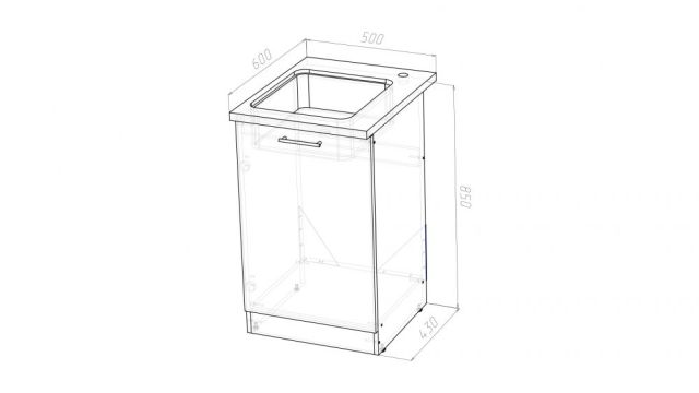 ТМ.50.7У Тумба под накладную мойку с одной дверкой 500 мм