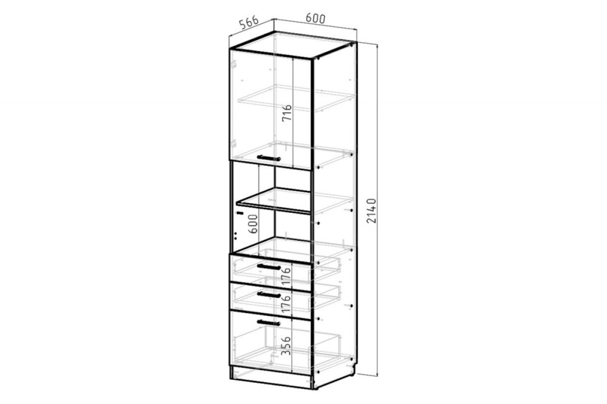 ПВТ.60.7-00-4МУ Пенал с 1 дверцей и 1 ящиком 600 мм