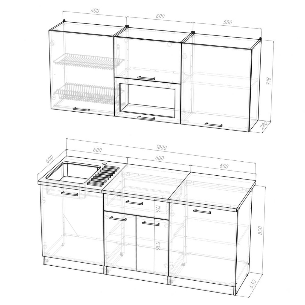 КГ "Арина" ШН.60.03Г СВЧ Шкаф с 1 подъемной дверцей и полкой под СВЧ-печь 600 мм
