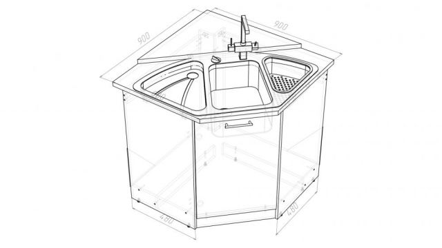 КГ "ГЛОРИЯ" ТМУ.90.7У Тумба под мойку угловая 900х900 мм