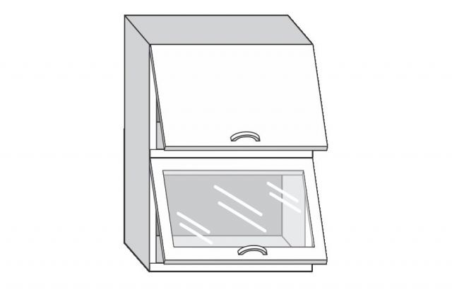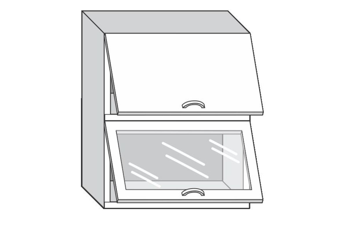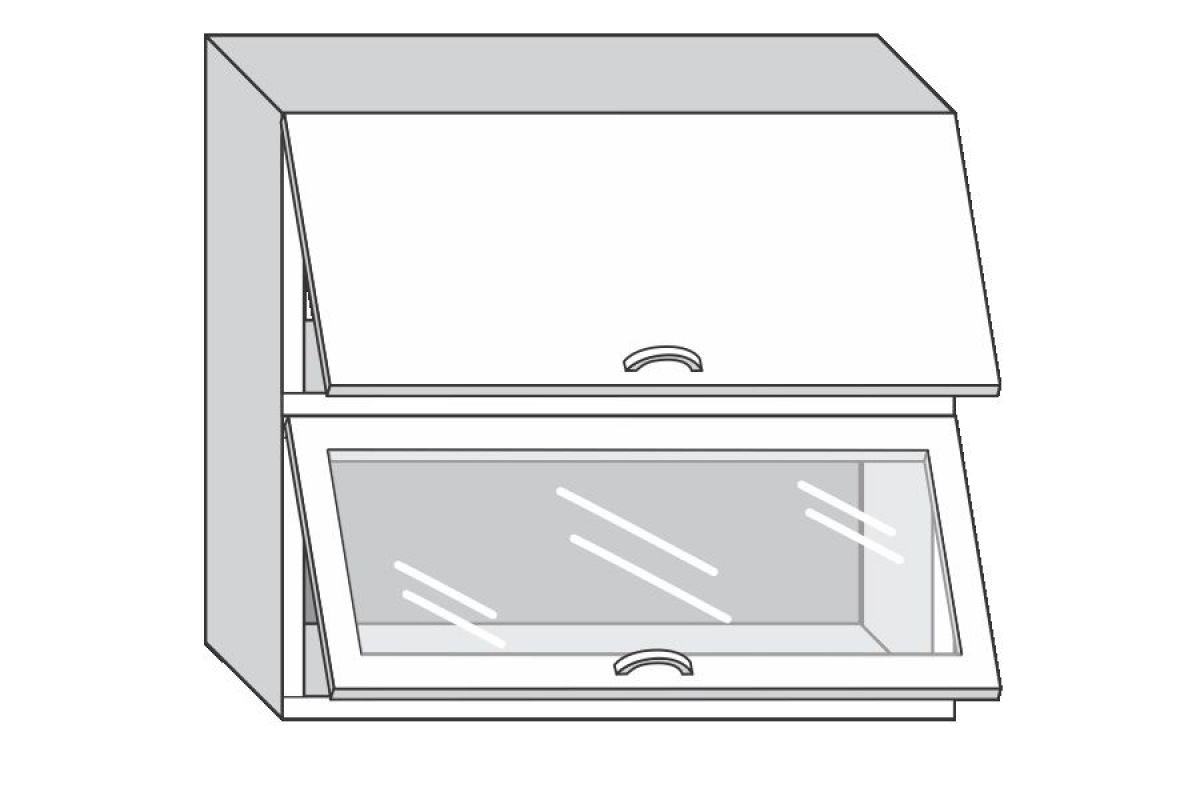 1.60.8 Грейс Шкаф настенный с двумя гориз. дверцами, одной стекл. дверцей h 720