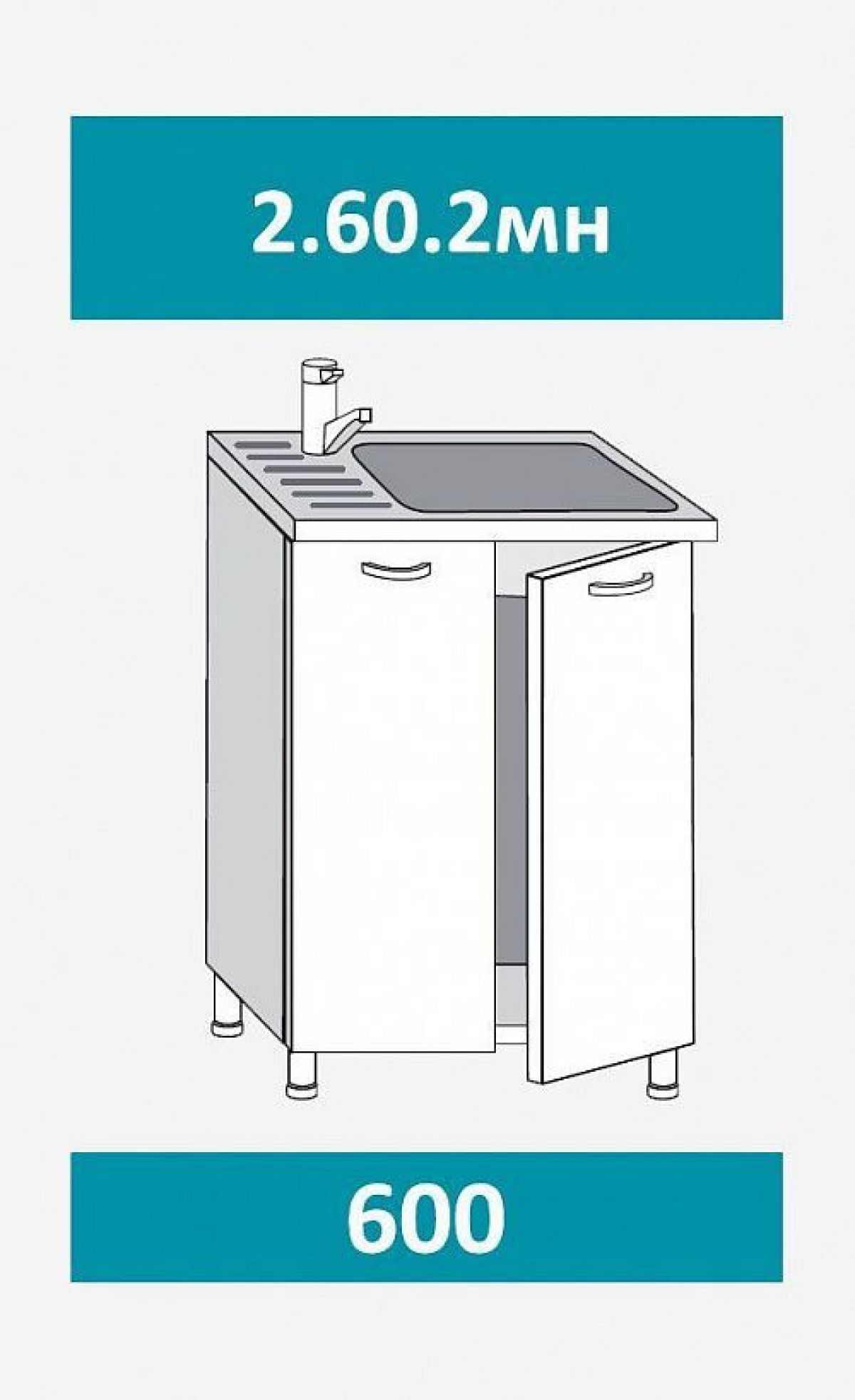 2.60.2мн Грейс Шкаф-стол на 600мм под накладную мойку с 2-мя дверцами
