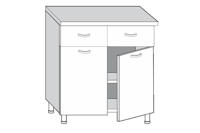 2.80.22 Грейс Шкаф-стол с двумя ящиками и двумя дверцами (б/столешницы)