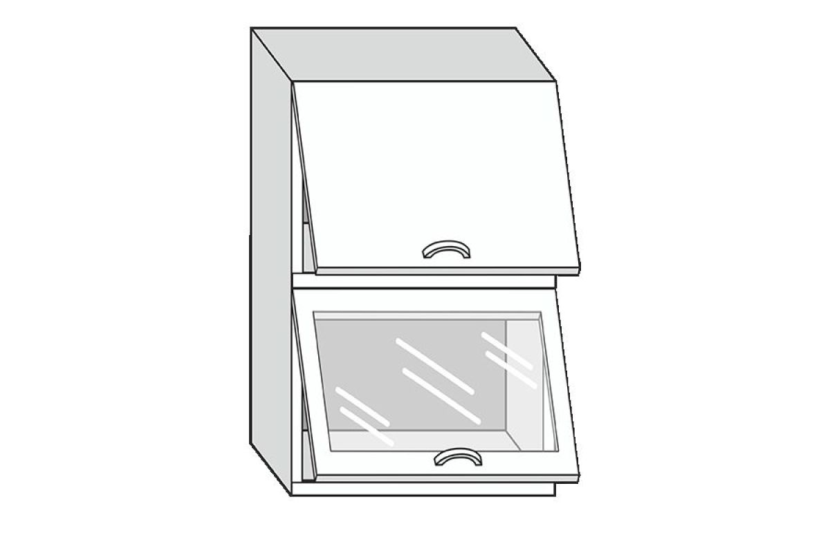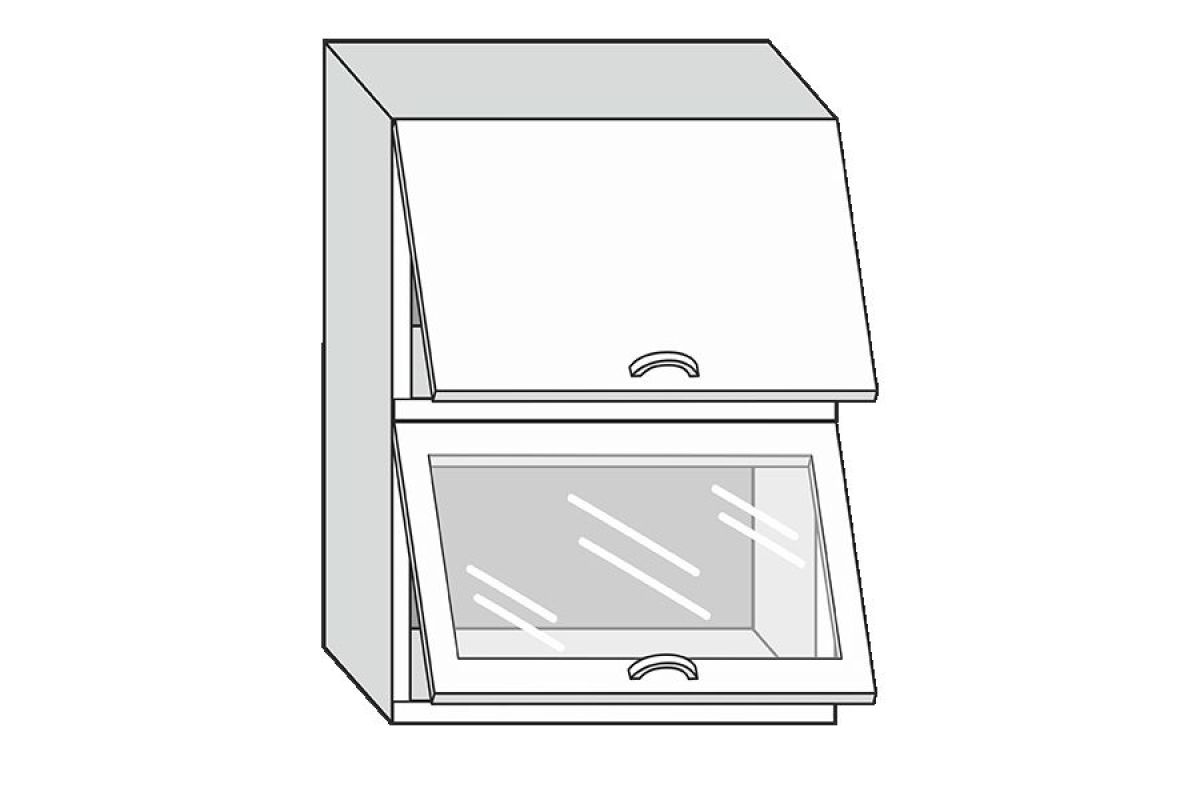 19.60.8 Грейс Шкаф настенный с двумя гориз. дверцами, одной стекл. дверцей h 913