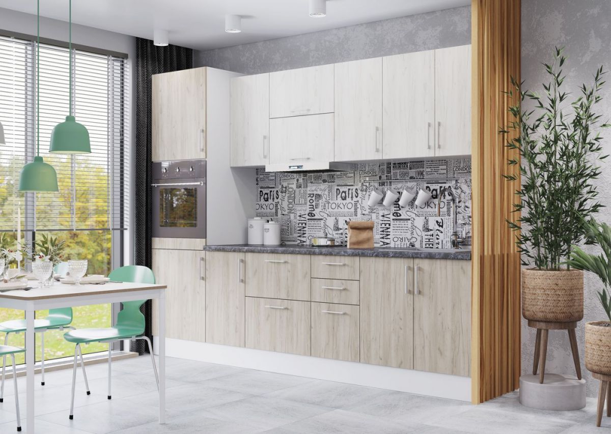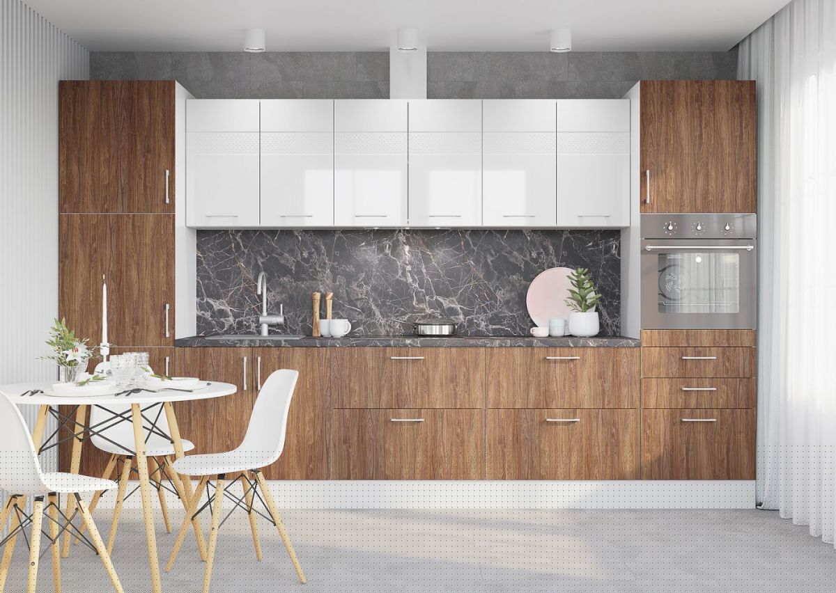 Корпус и фасад поставляются в отдельных упаковках, что дает возможность комбинировать в одной кухне разные фасады.
