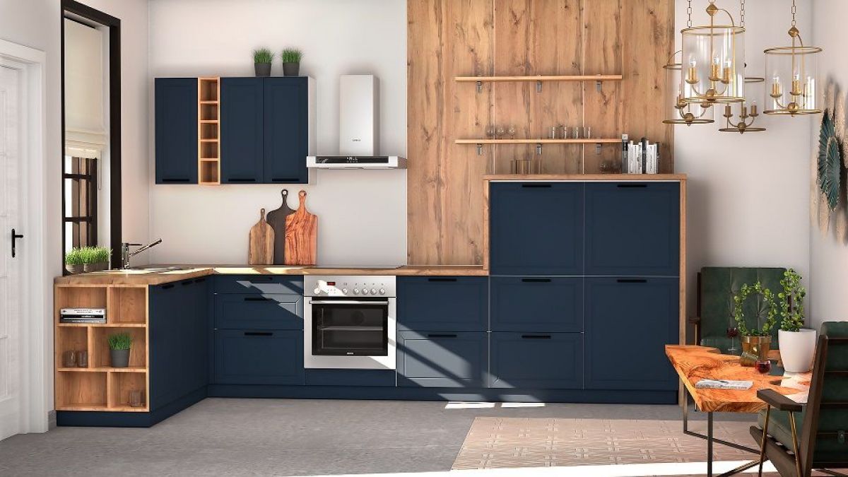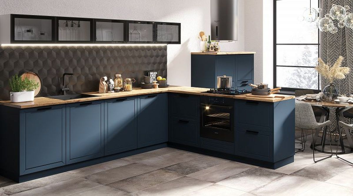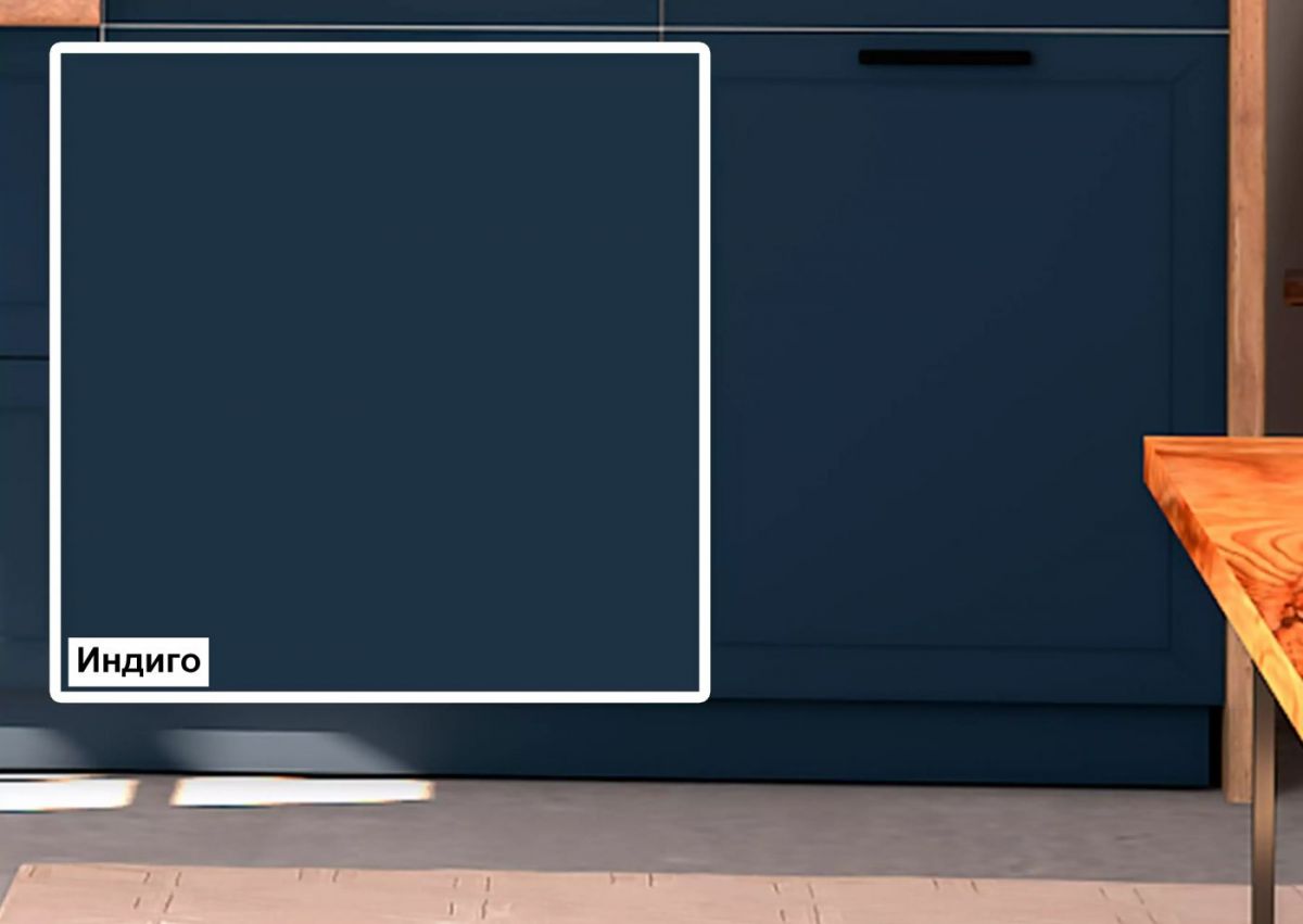 • цвет ЛДСП корпуса – «Белый», цвета МДФ фасадов –  «Индиго», «Белый» и «Графит»