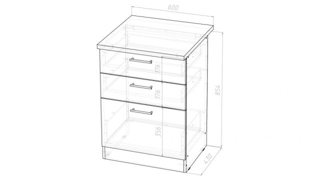 КГ "Адажио" СР.60.224М Стол с тремя ящиками 600 мм