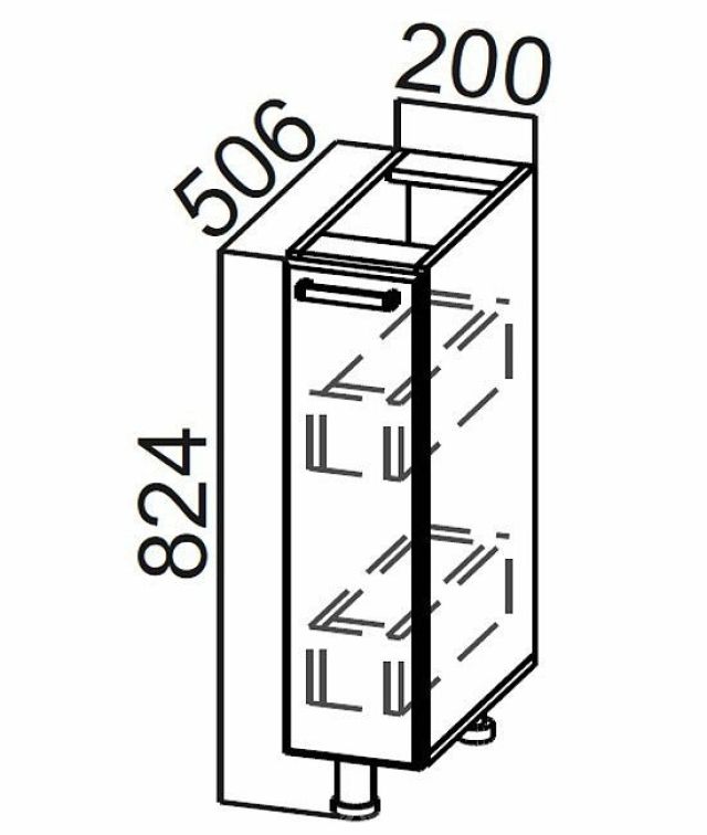 Шкаф нижний С200б бутылочница (ЛДСП корзина) КГ Вельвет Акция