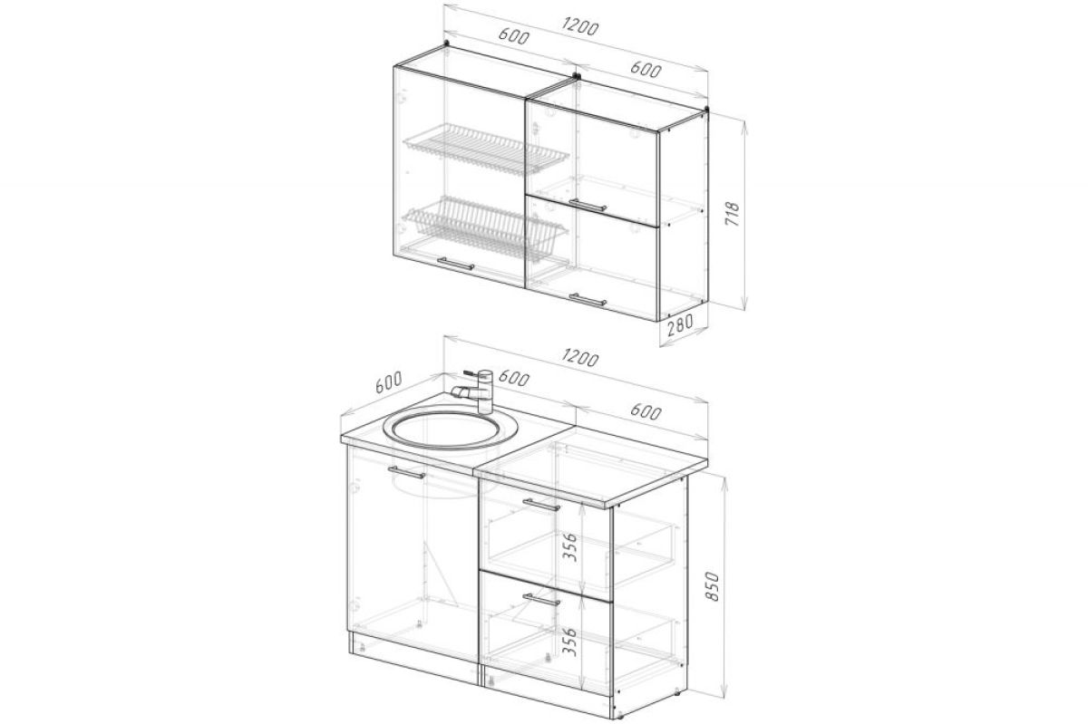 КГ "Лотос" ТМ.60.7.2 Тумба под мойку прямая с двумя дверками 600 мм
