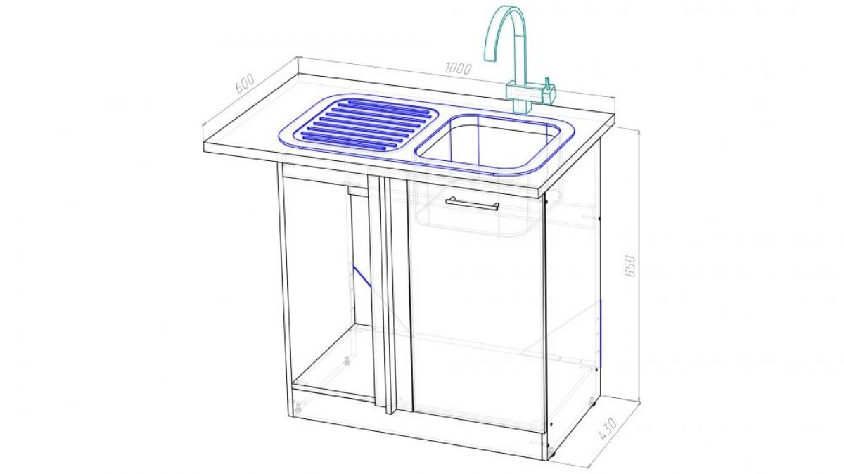 КГ "ПАОЛА" ТМ.60.7У Тумба под накладную мойку с одной дверкой 600 мм