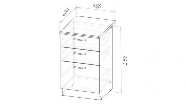 КГ "АМЕЛИ" СР.50.224М Стол с тремя ящиками 500 мм