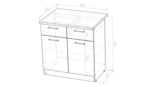 КГ "СЮИТА" СР.80.15.2М Стол с двумя ящиками и двумя дверками 800 мм
