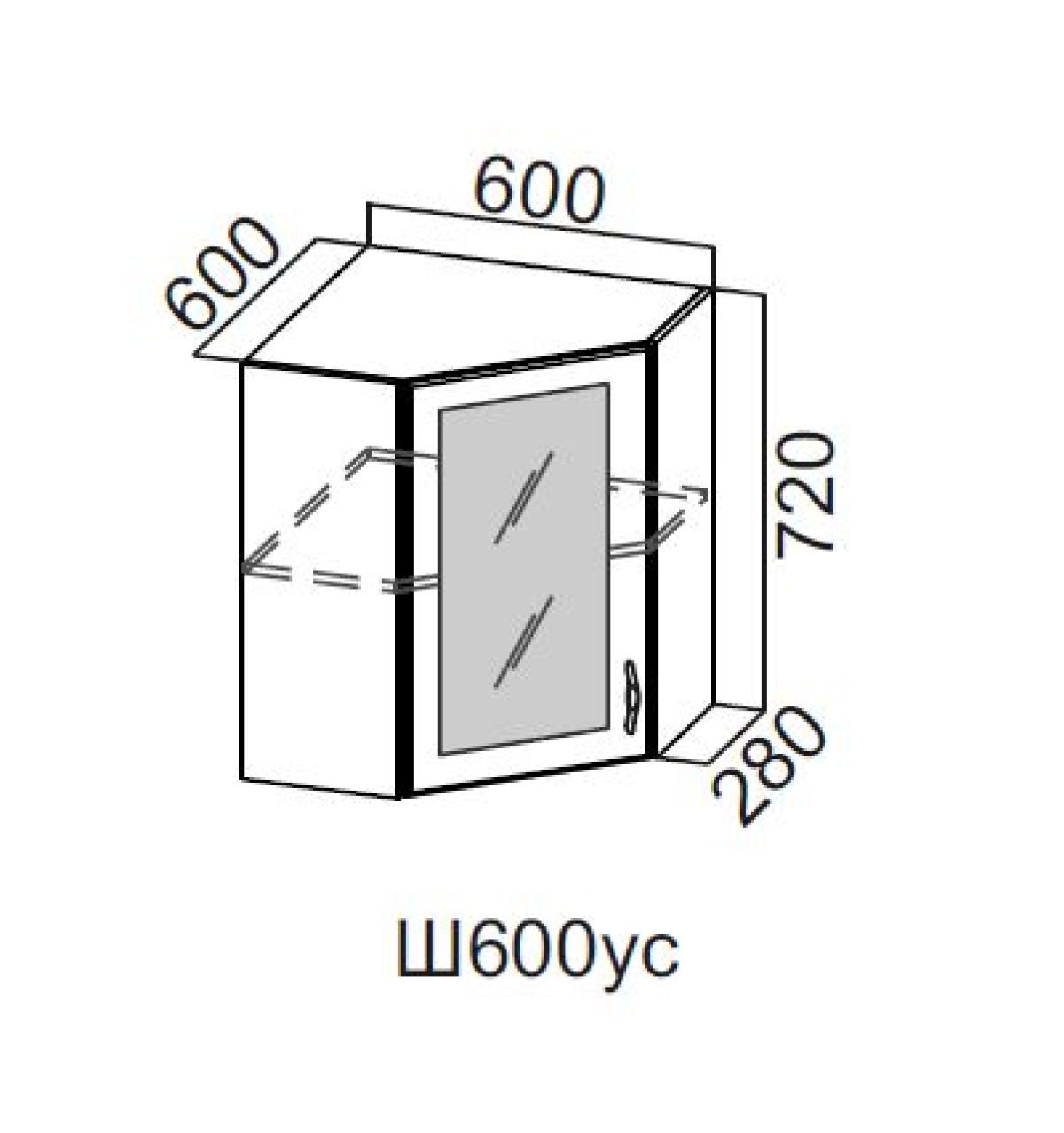 Шкаф навесной угловой со стеклом Ш600ус 600*720*600 (КГ Прованс) Акция