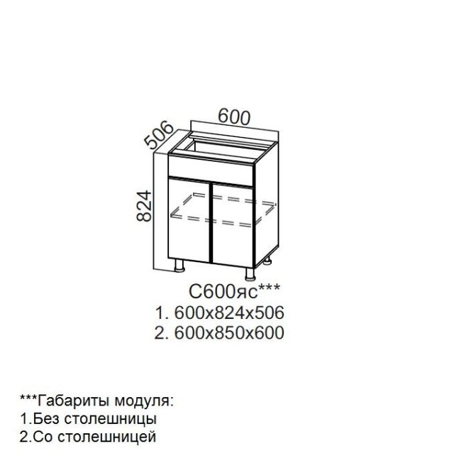Стол-рабочий с ящиком и створками С600яс (КГ Модус) Акция