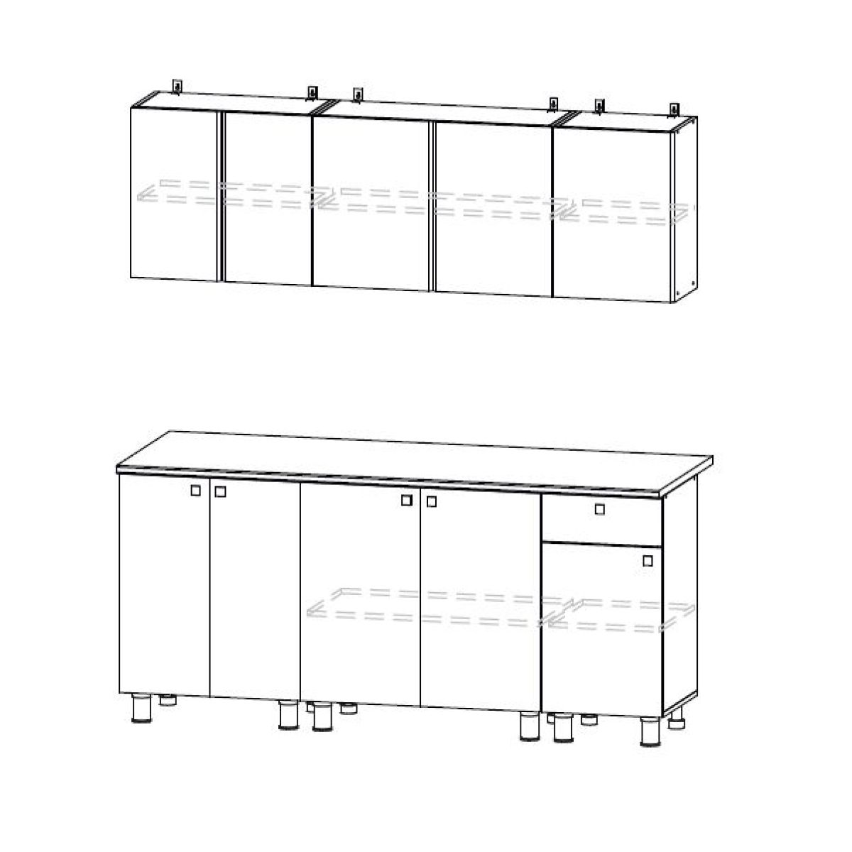 Ручки: Верх без ручек. Открывание осуществляется за выступающий снизу торец фасада.